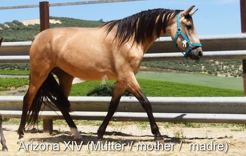 lieber Charakter, roh, steht draußen, spezielle Farbe, Falbe mit PRE Papieren, Standort Österreich, Abstammung: Francisco Fernandez de Arevalo y Delgado, Paco Marti, Hnos Camacho Benitez www.elegante-andalusier.com