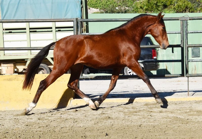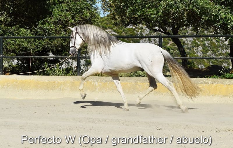 lieber Charakter, roh, wurde vor Kurzem aufgestallt, klein, gute Bewegungen und Abstammung, Abstammung: Pepe Werner, los Retamales, Yeguada Militar, Opa Dasiato III und Uropa sind qualifiziert www.elegante-andalusier.com