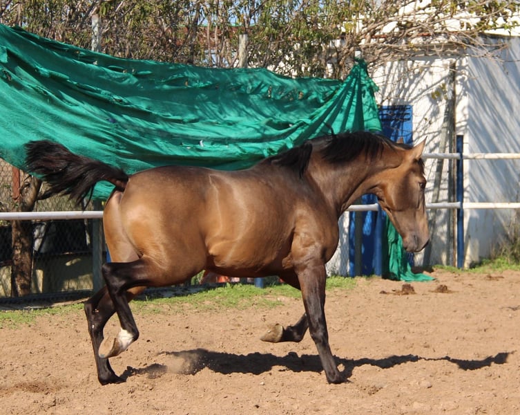 Nativo, born on April 5th, 2023, is the typical PRE: baroque, short, powerful, and in a special color. He is familiar with lunging and riding, though he has only been introduced to these activities so far. Nativo is clear-minded, not sexually motivated, and can sometimes be quite a clown and very playful. As a foal, he sustained an injury, which has long since healed; the scar is purely cosmetic (see the last photo). Upon request, Nativo can remain in training with us for further education. An ultrasound examination can be arranged. International transport can be organized. Videos available upon request.