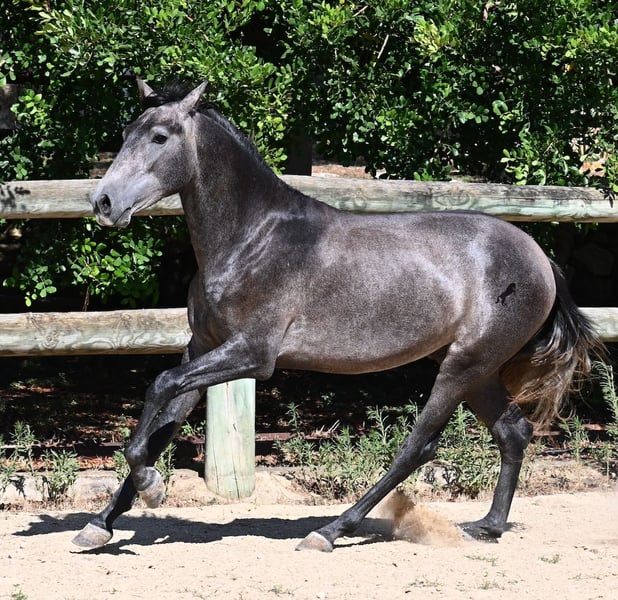 Dieser im Frühjahr 2023 geborene PRE Hengst (Andalusier mit Rassenachweis der ANCCE), ist noch ein richtiger Jüngling. Da er sehr viel Cartujano-Blut (Kartäuser) in sich hat, ist er ein Spätentwickler, denn diese ehemaligen Pferde der Könige, lassen sich Zeit, bis sie richtig stolze und imposante Pferde werden. Und Zeit wird ihm auch gegeben, seit nur wenigen Wochen wurde er von seinem Hengskumpel getrennt und steht nun einer großen Paddockbox. 2x die Woche wird schonend Bodenarbeit mit ihm gemacht, nach Horsemanship, um ihm eine gute Basis zu geben, für sein späteres Leben als Reit- oder Fahrpferd. Er gibt schon die Hufe, lässt sich brav putzen und bei der Bodenarbeit reagiert er schon fein auf Körpersprache und geht fein ein aufs Rückwärtsrichten. Aktuell misst er 155cm, wobei noch einige Cm nachkommen- wie gesagt, ein Spätentwickler ;) Die Kastration vor Ort wäre möglich, sofern Hengsthaltung keine Option ist. Sein Standort ist Menorca. Videos und Abstammung gerne auf Anfrage. Gerne organisiere ich vor Ort eine AKU, Kastration, Transport oder auch ihre Reise, sollten Sie persönlich zum Anschauen kommen. Details dazu gerne auf meiner Seite oder im Gespräch.