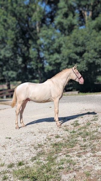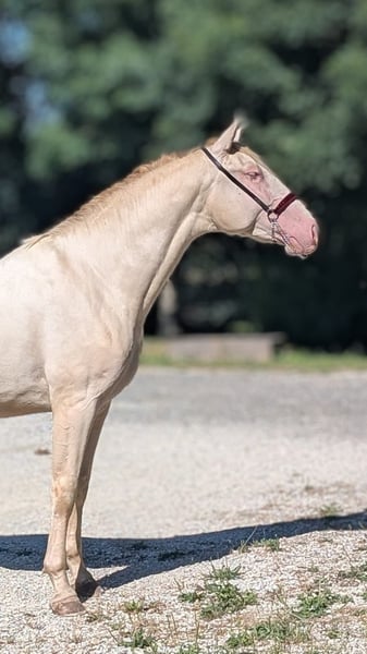We present to you this young perlino stallion, a future breeding stallion with exceptional qualities. His rare and precious coat, carrying cream genes, ensures the transmission of diluted colors (isabella, palomino, perlino, cremello, etc.) to his future offspring, making him a true treasure to enrich your breeding program. Highlights of Orgulloso: ⚜️ Unique genetics: With his perlino coat, this young horse is an ideal choice to bring color and originality to your foals. ⚜️ Exemplary character: Calm, curious, and easy to handle, he displays a reliable and balanced temperament, qualities he will pass on to his descendants. ⚜️ Prestigious lineage: Coming from lines renowned for their beauty and performance, he has everything it takes to become a sought-after and successful breeding stallion. This young horse is a rare opportunity for breeders looking to add real value to their program: elegance, coat diversity, and an exceptional temperament. Make a future-oriented choice for your breeding! For more information or to arrange a visit, please do not hesitate to contact us. --- ALEGRIA – Find the horse of your dreams and create a unique relationship based on trust and connection. At Alegria, we understand that purchasing a horse is much more than just a transaction. It’s about finding a lifelong partner with whom you will build a strong and fulfilling relationship. We offer expert support at every step, so you can make an informed choice and embark on this adventure with peace of mind. Why choose Alegria? Personalized support to guide your decision. We help you find the horse that matches your personality, expectations, and skills, ensuring that the relationship you build with him is smooth and natural. ✨ Our team of experts advises, guides, and supports you in your process to make an informed choice without haste. Horses raised in an environment conducive to their well-being. Our horses are raised in exceptional conditions, benefiting from gentle and respectful education, based on our exclusive "Complicity Relationship" method. Each horse is prepared to be a reliable, responsive, and balanced partner, ready to build a trusting relationship with you. Quality care to ensure optimal health. The well-being of our horses is paramount. They are regularly monitored by animal health experts: veterinarians, osteopaths, farriers, and dentists. This medical oversight ensures that your horse will be in top shape, ready to start this new relationship with you under the best conditions. Transparent follow-up through progress sheets. Each horse benefits from a detailed progress sheet that allows you to know his exact level, strengths, and character. This transparency gives you all the keys to choose the horse that will meet your expectations and the relationship you wish to build with him. Continuous support to succeed in this relationship. At Alegria, we believe that a lasting relationship is not improvised. That’s why we remain by your side after the purchase, with personalized follow-up to help you build a true connection with your horse. Through our in-person and online training, you will learn to better understand your horse and strengthen the foundations of your relationship. Testimonials from satisfied clients. We have supported hundreds of riders in their projects. 100% of our clients are satisfied with the support and the relationship they have been able to build with their horse. Their testimonials are the best proof of the quality of our work and the success of the relationships we foster. Find the horse that meets your expectations. Discover our selection of exceptional horses now and start imagining the relationship you will create with him. Check the progress sheets and let our expert team guide you to find the horse that meets your needs. Discover our selection of horses at www.alegriacomplicite.com and start building the relationship you dream of. Alegria – Find the horse that suits you and create a relationship based on trust and connection.
