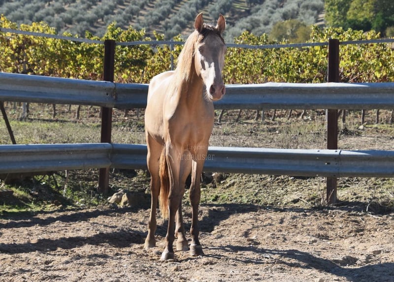 lieber ruhiger Charakter, neugierig, roh, steht mit anderen Junghengsten draußen, groß, gute Abstammung, spezielle Farbe, PRE Bayo Perla mit Papieren, Abstammung: Antares, Paco Marti, Señorio de Bariain, Cardenas, Opa Karateka und Uropa Gaucho sind qualifiziert www.elegante-andalusier.com