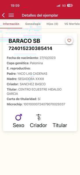 Baraco ist ein zweijähriger Hengst. Er ist PRE, vollständig registriert, in Palomino-Farbe. Er ist gerade auf dem Gestüt angekommen. Geboren und aufgezogen wurde er auf einem großen Hof mit anderen jungen Pferden. Der Winter war lang und hart, er verliert noch sein langes Winterfell. Er besitzt eine sehr korrekte Konformation, starke Knochen, einen schönen Kopf und einen geraden Rücken. Er verhält sich ziemlich brav, ohne Hengstmanieren. Kein Problem im Umgang mit Stuten oder anderen Pferden. Seine Palomino-Farbe macht ihn besonders und einzigartig. Sehr guter Preis. Der Transport kann unkompliziert organisiert werden. Für weitere Informationen senden Sie uns eine private Nachricht oder kontaktieren Sie uns per WhatsApp (+34 620 247 441).
