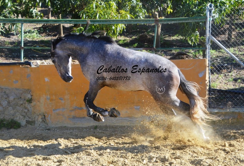 Ten wspaniały 3-letni młody ogier szuka nowego właściciela. Poprawnie i harmonijnie zbudowany. Posiada trzy bardzo dobre podstawowe chody. Uderzyło mnie czujne spojrzenie, z jakim do mnie podszedł. W wieku niecałych 3 lat - skończy je w maju - ten młodzieniec był już trochę lonżowany. Wie, jak się przygotować do jazdy i cieszy się uwagą Rodowód: Jego rodzice wywodzą się od ogiera Centurion, a dalej od Cardenasa, słynnego ogiera Yeguada Militar Evento. Może zostać z nami w treningu. AKU można zorganizować w krótkim czasie. Transport międzynarodowy.