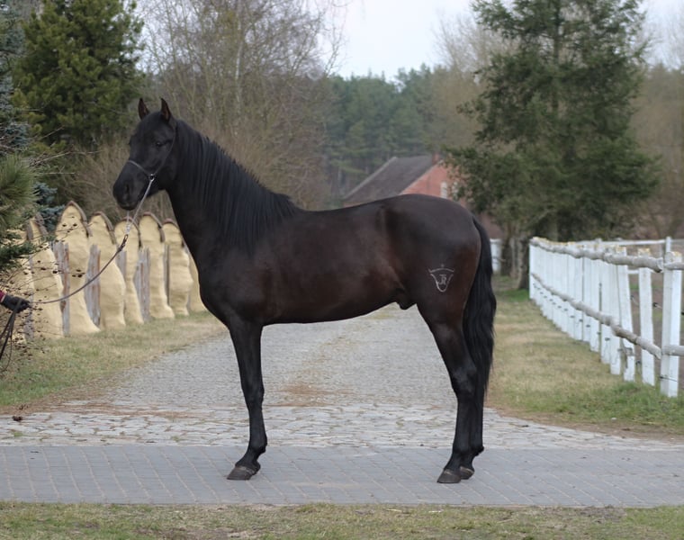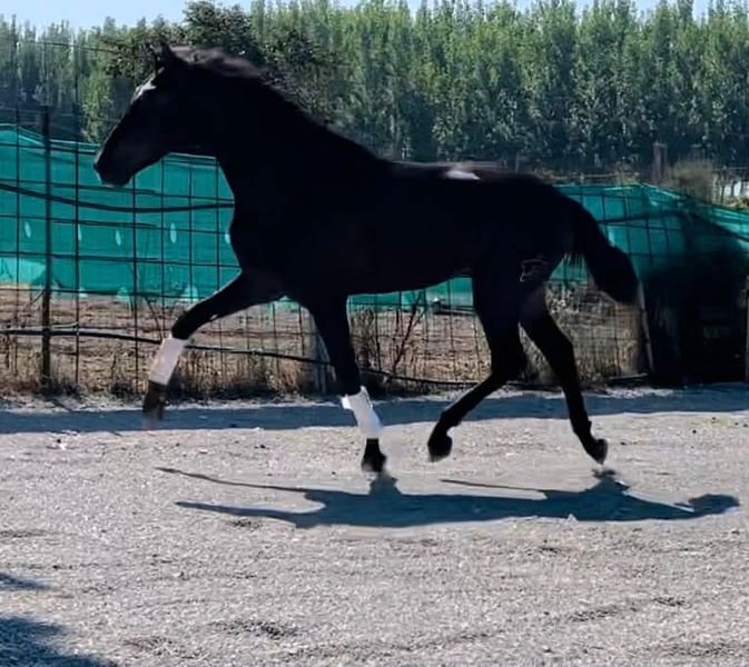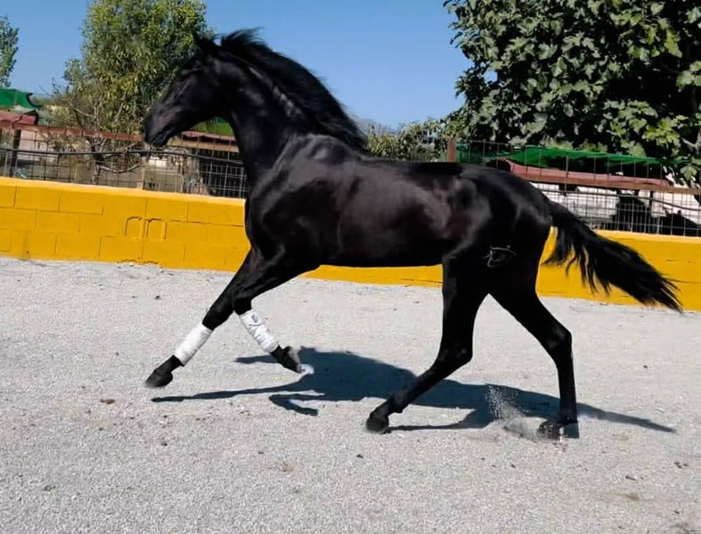 A beautiful three-year-old PRE stallion is looking for a new home. Imported from Spain, he has full pedigree and an ANCCE passport. His sire, from Yeguada Militar - Cepellon is one of the most succesfull and decorated stallions. A high quality future horse. He has spectacular movement with high front leg action, currently standing at approximately 162/3 cm, and expected height at 165/6 cm. He is very well-behaved and has already experienced the normal life of a horse, which means he goes out to the paddock daily with a friend. He doesn't have any vices such as weaving, cribbing, kicking biting box walking , etc. He is a smart, people-oriented horse. Very easy and well behaved in handling and fed high-quality feed. He will be a spectacular representative of his breed with a beautiful black coat. The future owner can decide whether he will remain a stallion or a gelding. He has fresh X-rays of his legs and back—all are clean. More WhatsApp + 48 513 179 245