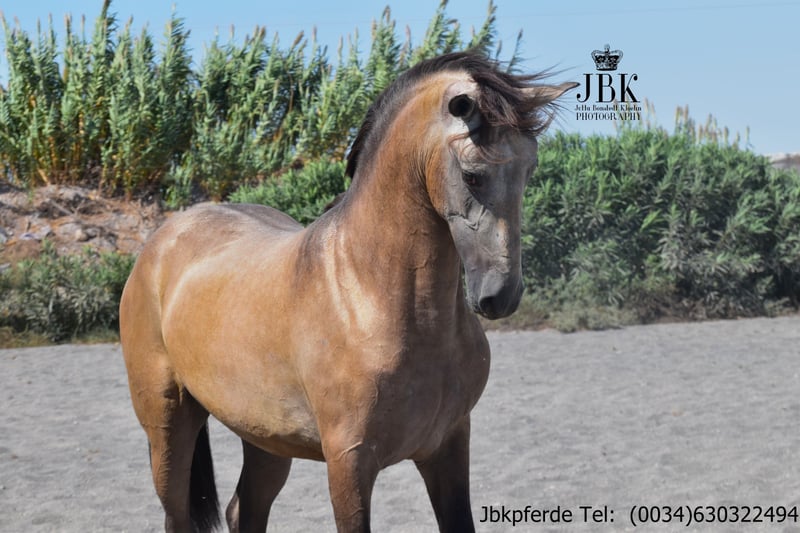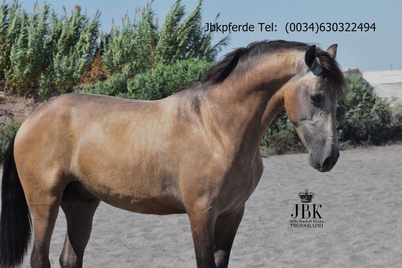 Nazareno es un excelente joven semental con muchas cualidades. Ya es bastante grande, pero aún así es absolutamente ágil y maniobrable. Nazareno se maneja bien consigo mismo y se mueve de manera equilibrada para su corta edad. Creció en un grupo y ahora ha sido estabulado. Desde hace poco conoce el trabajo en cuerda y está abierto a todo lo demás. Es un placer trabajar con él, ya que es un caballo inteligente y astuto que aprende rápidamente. Además, en su línea tenemos a Ermitaño, un semental élite aprobado de la cría de Escalera de la Escalera. Lazo Díaz Llavanero y Paco Martí también se encuentran en su línea de sangre. Nació el 07.04.2023.
