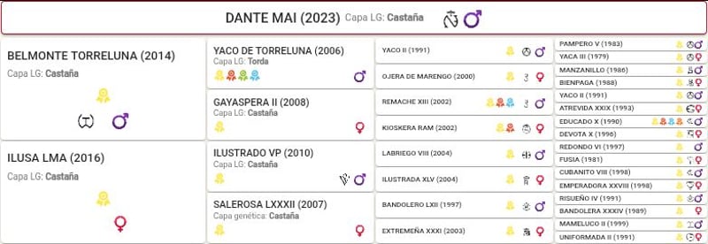 Veulen, nakomeling van Belmonte Torreluna en Ilusa LMA, 2,5 jaar oud en 1,69 m hoog. Gevestigd in Galicië.