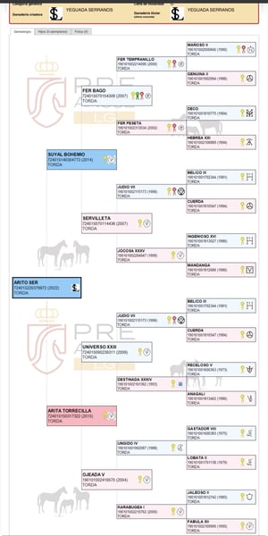 Bij @yeguada_serranos bieden wij te koop aan: Arito Ser, een 3,5 jaar oude Pura Raza Española (PRE) ruin, met uitzonderlijke genetica en een directe afstamming van grote PRE-icoons zoals Fer Bago, Fer Tempranillo, Mañoso II, Judío VII, Fer Peseta en Ungido IV. 🧬 Bewezen bloedlijnen met kampioenen en invloedrijke PRE-pony's die kwaliteit, functionaliteit en veelbelovende sportpotentie bieden. 🐎 Arito Ser bevindt zich nog in de beginfase van de training, start met werk in de piste, toont een goed karakter, bereidwilligheid en groot potentieel voor dressuur. 📏 Hoogte: 1,70 m (16.3 hh), met een sterke bouw, goede bewegingen en een indrukwekkende uitstraling. 📍 Gevestigd in Andalusië, Spanje 🌍 Mogelijkheid tot nationale en internationale verzending ✨ Een uitstekende kans voor zowel sport als toekomstige fokkerij. ➡️ Ook een volle zus beschikbaar, gespeend op 6 maanden, van dezelfde vader en moeder, ideaal voor wie wil investeren in topgenetica vanaf jonge leeftijd. 📩 Voor meer informatie, video's of het plannen van een bezoek, neem gerust contact met ons op via privébericht.