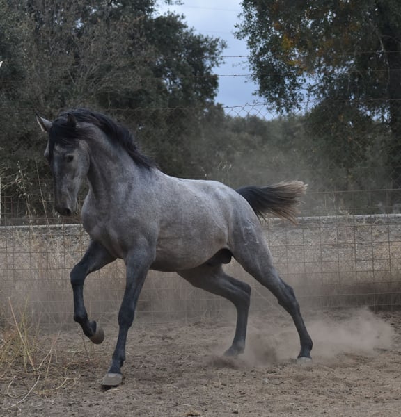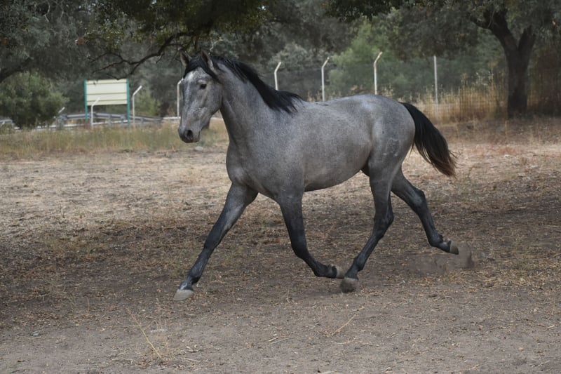 ¡Oportunidad de adquirir un magnífico caballo de alta calidad! Se ofrece en venta un hermoso semental PRE, nacido en 2023. Es un ejemplar tordo, con una alzada de 165 cm actualmente, ideal para quienes buscan un caballo de gran presencia y elegancia. Predestinado a doma clásica, demuestra excelentes cualidades para el trabajo y la competición en esta disciplina. Es un caballo con muy buena cabeza, muy noble, no se asusta, tiene un caracter magnifico y es un PRE de alta calidad y de gran corazon. Esta totalmente sano con 20 rayos x limpios. Valiente conoce la montura y se porta mejor imposible. El se porta genial con cabras, niños, perros y animales pequeños. www.iberianpremiumhorses.com No pierda la oportunidad de contar con un caballo de gran potencial y belleza. Para más información, no dude en contactarnos.