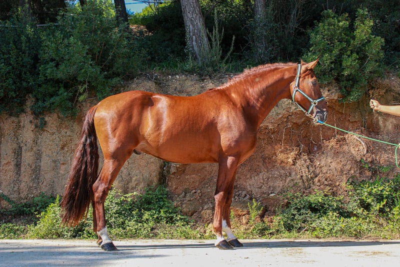 Chestnut colt, 3 years old, very handsome, well trained and super movements. Spectacularly beautiful.