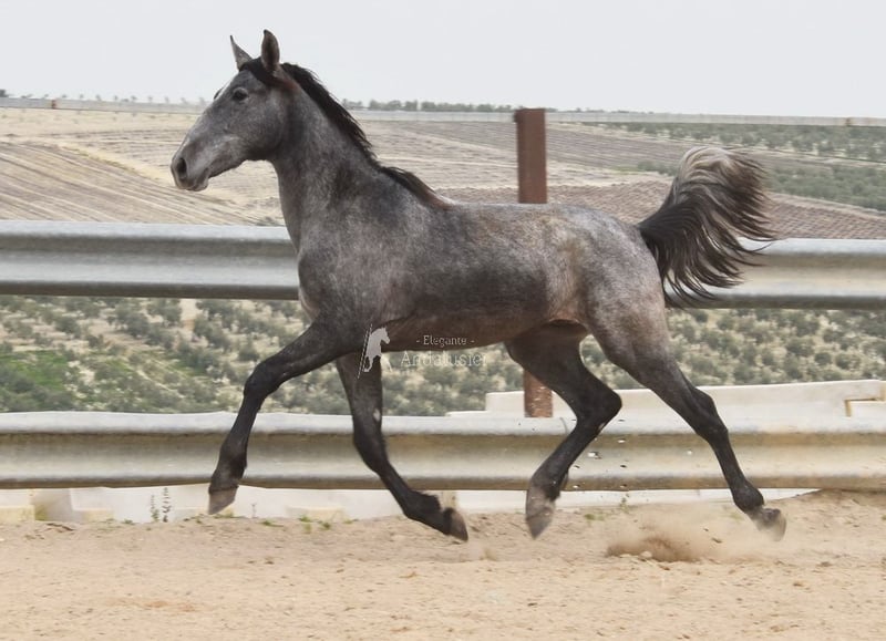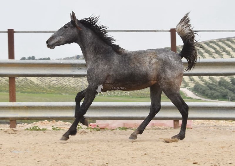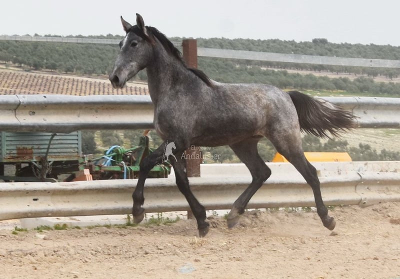 Joli jeune étalon gris PRE, bon mouvement
