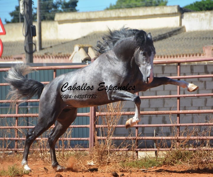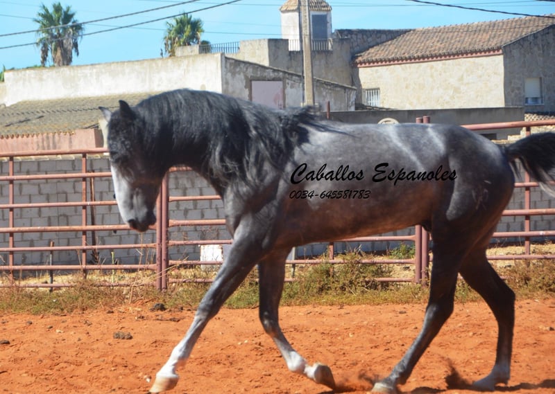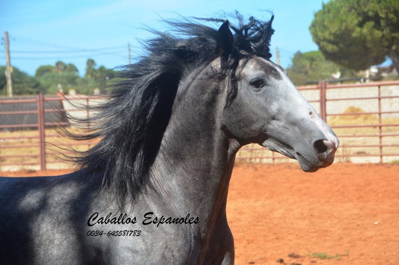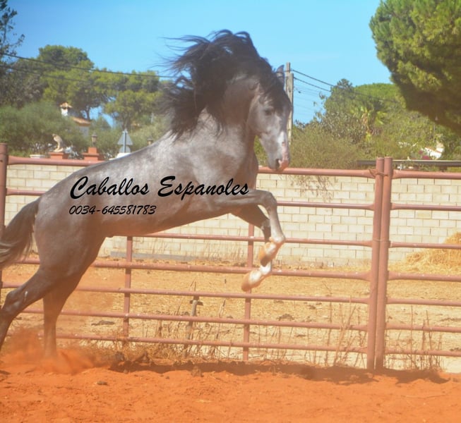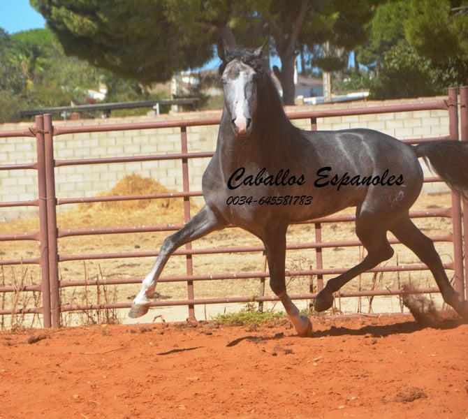 Der junge Hengst hat sehr viel Ausdruck und obwohl er nicht der Größte ist, ist er nicht zu übersehen. Er ist angeritten und war auch schon mal im Gelände, Er ist mit drei guten, ausdrucksstarken Grundgangarten ausgestattet. Der junge Mann ist immer fröhlich und an neuen Dingen interessiert. Im Umgang ist er brav und gut erzogen. Abstammung: Marín García, Benito Sierra Das Pferd wird im Auftrag verkauft. Sie kann bei uns bin Beritt bleiben. AKU kann kurzfristig organisiert werden. Internationaler Transport.
