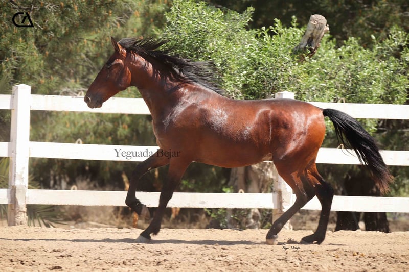 Duque CA ist ein 3-jähriger brauner Hengst, Sohn von Maestro Rey und Remadora de Vilaire. Seine genetische Linie ist ein Garant für Qualität: Nachkomme von Oleaje, Yaco de Torreluna (Mejorante-Zucht) und Fer Bago. Mit einer harmonischen Statur, kraftvollen Bewegungen und edlem Charakter hat Duque CA alles, um zu einem ganz besonderen Pferd zu werden. Ideal für diejenigen, die einen jungen Partner mit Zukunft suchen. Demnächst: Neues Video in der Freiarbeit! Schreiben Sie uns, wenn Sie ihn kennenlernen oder einen Termin für eine Besichtigung vereinbaren möchten.
