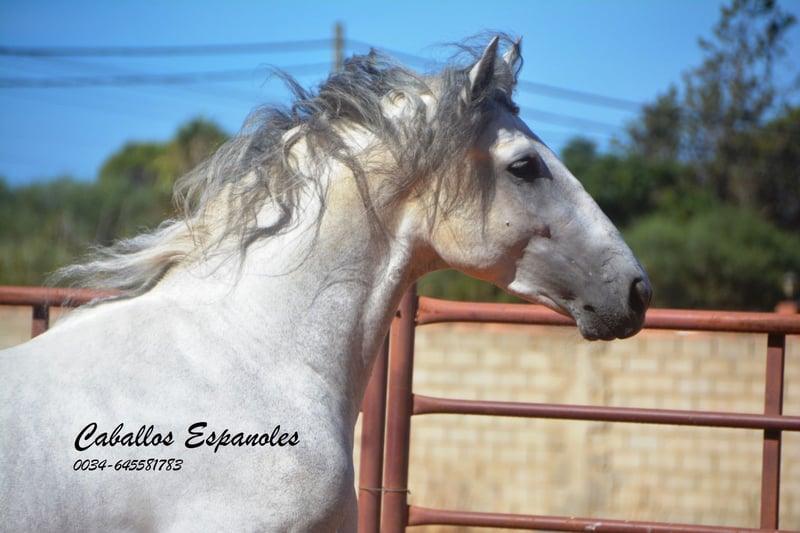 Dieser ausdrucksstarke PRE Hengst, mit seinem klassischen Kopf, steht auf einem korrekten Fundament, Der Schimmel überzeugt durch seine drei guten Grundgangarten. Im Umgang ist er immer freundlich und brav. Mit einem Stockmaß von ca. 160 cm ist er perfekt für den Freizeitbereich geeignet und zeigt viel Potenzial für zukünftige Aufgaben. Der Hengst ist in den Grundgangarten geritten und lässt sich leicht nachreiten. Er ist ideal für Reiter, die einen zuverlässigen Freizeitpartner suchen, der sowohl im Gelände als auch in der Halle Freude bereitet. Bei Interesse oder weiteren Fragen stehe ich Ihnen gerne zur Verfügung. Vereinbaren Sie einen Termin für eine Besichtigung und überzeugen Sie sich selbst von diesem außergewöhnlichen Pferd! Das Pferd wird im Auftrag verkauft. Sie kann bei uns bin Beritt bleiben. AKU kann kurzfristig organisiert werden. Internationaler Transport.