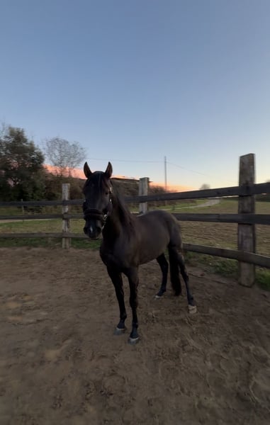 Precioso semental Pura Raza Española de capa negra con 160cm, con unos muy buenos aires y movimientos. Con un buen caracter para criar y montado. El caballo esta montado a los 3 aires en pista y tambien sale de ruta solo. No es un caballo para todos los publicos ya que tiene temperamento como semental pero quando esta para el trabajo es excelente y con un poco de trabajo es un caballo para todo el mundo gracias a la sangre española que hace que sea un caballo mas calmado. Tambien con un buen linaje para ofrecer como semental y dado de alta como semental en el libro ANCCE.