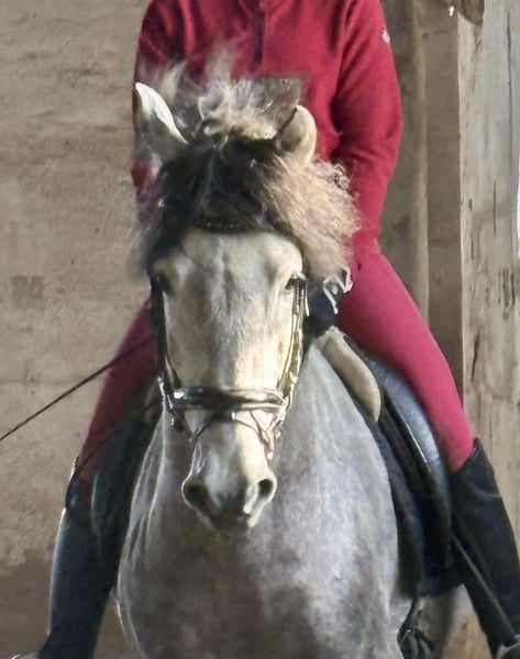 When movement quality and breed type come together, you get a Karthago :-) This young stallion has an exceptionally good walk, an outstanding canter, and plenty of talent to develop a superb trot. His hindquarters are always engaged, and he can effortlessly carry weight. Karthago is balanced, agile, and elastic. His sire, Activo VII, has achieved success in sport up to S class and has been placed there. Karthago is the last direct descendant of Activo. In type, Karthago also possesses all the qualities of a typical PRE: he is short-coupled, with a high neck set, a refined head, and a rounded croup. Karthago is easy to ride. He is not spooky or nervous. He is simply a young stallion and can sometimes be a bit playful. When led, he likes to interact. He can be a little impatient when grooming and tacking up, but never mean—just like a child. Karthago could be an excellent horse for a light rider who wants to develop and train him. It doesn't necessarily have to be in dressage; he would also be perfect for working equitation, as he brings speed and agility to the table. Karthago was born in Germany. We are one of the largest PRE breeding farms in Germany, and our horses are renowned worldwide for their movement quality. This year, one of our horses competed in the finals of the Iberian Masters in France, and another at SICAB in Spain. In our opinion, Karthago is also one of our top young prospects. If you're interested, please feel free to contact us by phone.