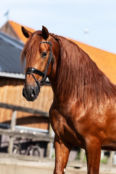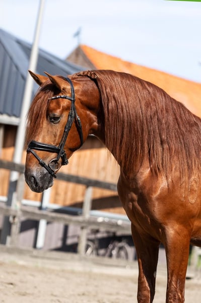 Soul on Fire 3,5-jarige PRE hengst, 164 cm, elegant tot in de laatste vezel en klaar om je hart te veroveren. Deze vos hengst brengt precies mee wat tegenwoordig telt: Aanwezigheid, persoonlijkheid – en potentieel. Geen wild tempo, geen snelle druk. Deze jongeling wordt voorzichtig ingereden. Hij toont zich dag na dag nieuwsgierig, gevoelig en met een innerlijke rust die onder de huid gaat. Korte feiten: • Opleiding: Voorzichtig ingereden, nuchter en helder van geest • Karakter: Slim, mensgericht, gemakkelijk in de omgang • AKU: Vers gemaakt inclusief volledige röntgenfoto's Omdat paarden zoals hij niet gezocht, maar gevonden worden. Fundi de Acedo is niet alleen een uitzonderlijk mooi en getalenteerd jong hengst, maar ook een echte schat in de dagelijkse omgang. Hij is totaal kindvriendelijk en zoekt de nabijheid van mensen – altijd bereid voor een klein aaitje of wat knuffelen. Ook in de dagelijkse routine laat hij zich van zijn beste kant zien: Bij het poetsen staat hij ontspannen en geniet van de aandacht, bij het zadelen en opstijgen blijft hij rustig en ongecompliceerd. Zelfs bij de smid toont hij zijn zenuwensterkte en laat hij braaf zijn hoeven doen. Vrachtwagen rijden kent hij ook en beheerst dat ook met zelfvertrouwen. Met een indrukwekkende genetische lijn, diep geworteld in de traditionele fokkerij van het stamboek Acedo. Zijn afstamming verenigt enkele van de beste lijnen van de PRE-fokkerij met bewezen prestaties, type en elegantie. Vaderlijn (vaderlijk): Zijn vader Matador HAB is afstammend van Halcon XLIII, een zoon van de bekende Torrero XI, die via de legendarische Entendido XX een lijn voert die bekend staat om zijn expressiviteit en barok type. De moederlijn leidt via Finesa II en Jumilla I naar Vinatero II, een van de dragende lijnen van het klassieke Spaanse paard. Moederlijn (moederlijk): Zijn moeder Bimba de Acedo is een dochter van de edele merrie Guinea HB, die zelf teruggaat op Amado XXXVII – een krachtige zwarte hengst die via Jerez XV inzet op sterke bewegingen en aanwezigheid. De moederstam leidt verder via Divorciada en Epon de Vale naar Repompo, bekend om zijn zeldzame kleur (Perlino-drager) en genetische diversiteit.