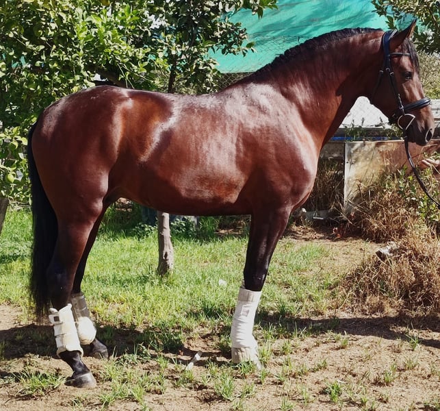 Pre semental de 2022, castaño, 164 cm, barroco Presentamos un impresionante PRE semental nacido en 2022, con una alzada de 164 cm. Este ejemplar de tipo barroco combina la nobleza y la fuerza de la raza con una presencia imponente y una estructura sólida, ideal para quienes buscan un caballo con carácter y belleza. Su color castaño resalta su elegancia natural, y su carácter bien formado lo convierte en un candidato excelente tanto para la reproducción como para la doma clásica o trabajos de alto nivel. Un semental con potencial y presencia, listo para destacar en cualquier disciplina ecuestre.