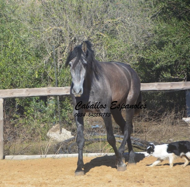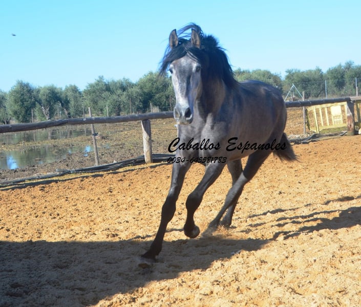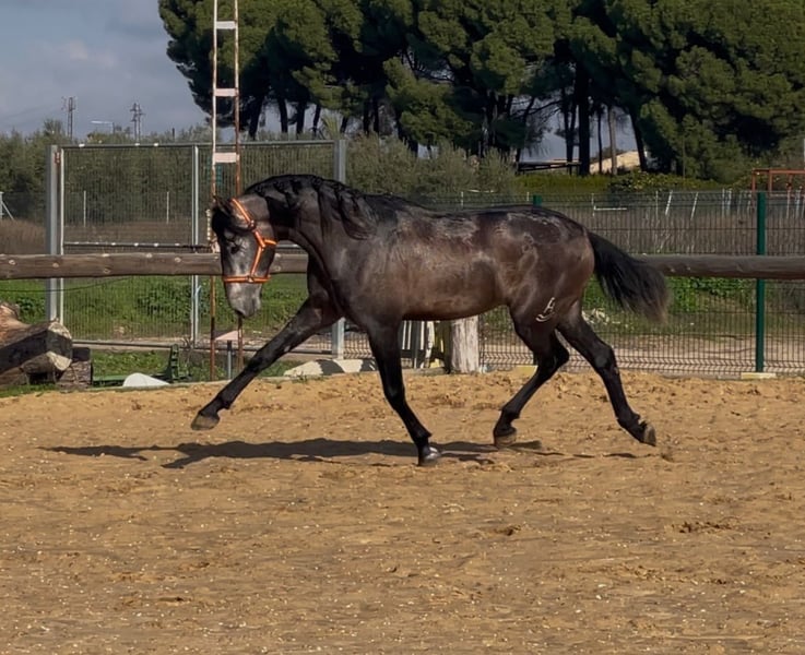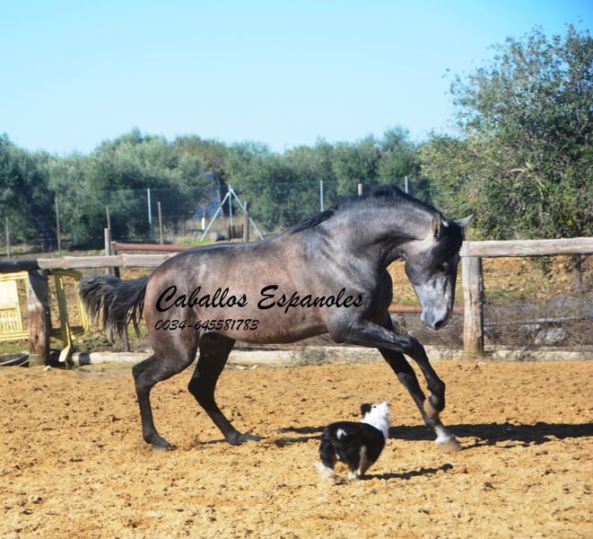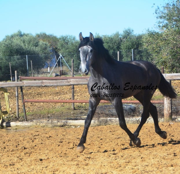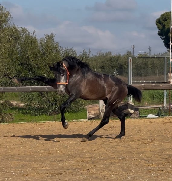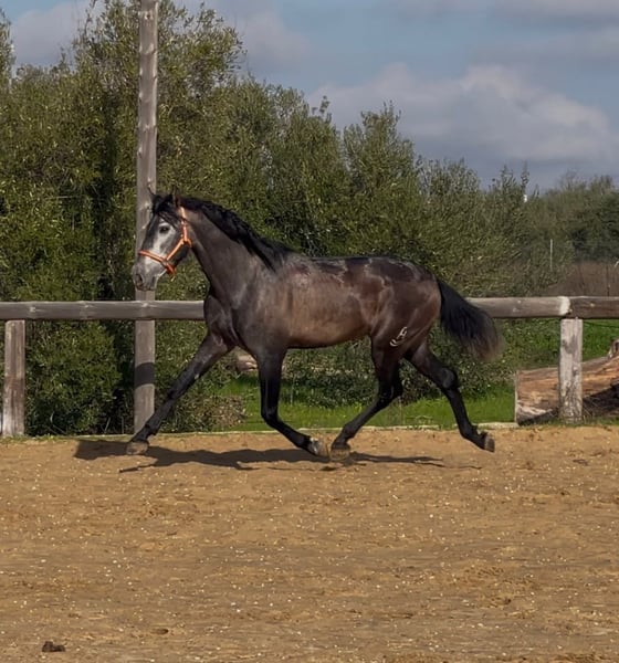 Dieser tolle, qualitätsvolle auf Dressur gezogen PRE Hengst gefällt durch seine Ausstrahlung und seine überragenden Bewegung. Dieser junge Hengst wird bei entsprechender Förderung in der Dressur sehr viel Freude bereiten. Im Umgang ist er superbrav und genießt die Streicheleinheiten. Er ist longiert und wird nun langsam an sein Leben als Reitpferd vorbereitet. Ein tolles Pferd zum Selbstausbilden, mit allerbester Zuchtlinie Seine Abstammung ist vom Feinsten. Ihr Vater ist der große Rappe Nelson (Yeguada Militar), sein Vater Gerente geht auf Remache zurück. Ihre Mutter vereint Candau Blut, Escalaera und den bewegungsstarke Vinatero III Das Pferd wird im Auftrag verkauft. Er kann gerne bei uns noch in Beritt bleiben. Eine AKU wird kurzfristig organisiert. Internationaler Transport.