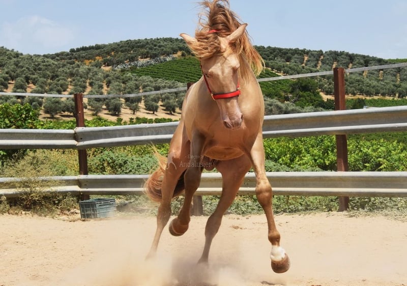lieber ruhiger Charakter, neugierig, verspielt, verschmust, in den Grundgangarten geritten, Gelände, groß, barock, bequem, gekört, Deckhengst, spezielle Farbe, Baya Perla (CrPrl) mit PRE Papieren, gute Röntgen und Piro negativ, Abstammung: Antonio Guiral Guarga, Castillo Villafranca, Paco Marti www.elegante-andalusier.com