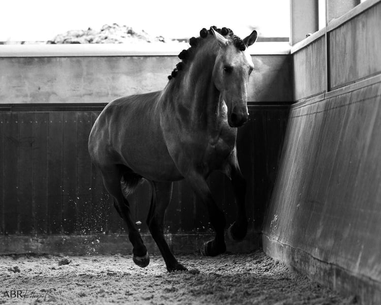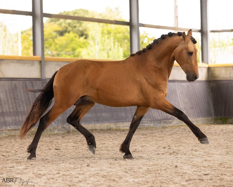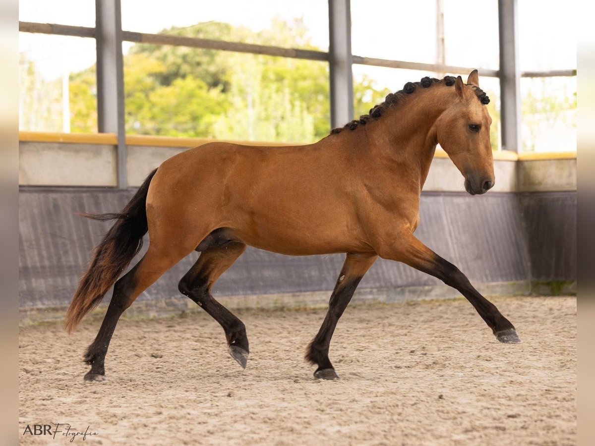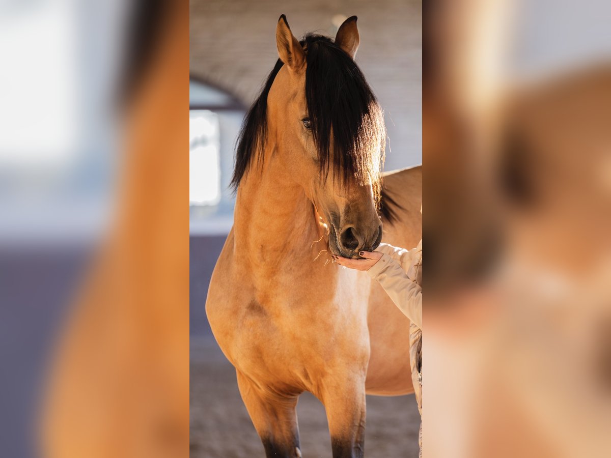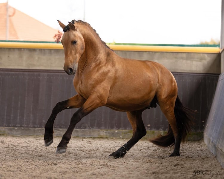 **Sales Advertisement: Dreamy PRE Stallion for Sale** **Features:** - **Breed:** Pura Raza Española (PRE) - **Gender:** Stallion - **Year of Birth:** 2022 - **Color:** Buckskin - **Height:** 165 cm - **Usage:** Dressage, Leisure, Working Equitation This wonderful stallion impresses with his appealing color and harmonious appearance. He stands at 1.66 m tall, has a great presence, and is a fine "gentleman" when working. He has been worked from the ground and is now being gently backed. He comes from excellent conditions. If you are interested or need further information, we look forward to your message. Viewings are possible by appointment. **Don't miss this opportunity!**