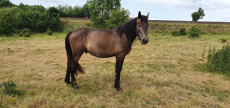 Sie sind auf der Suche nach einen widerstandsfähigen, kräftigen und robusten Vierbeiner mit gutem Sozialverhalten? Als mittelständischer landwirtschaftlicher Betrieb züchten wir seit über 15 Jahren ein robustes sportliches Warmblut. Wir belegen unsere Stuten ausschließlich im Natursprung, meist ab Ende Mai und verzichten auf Interventionen wie Hormonbehandlung und Ultraschalluntersuchungen. Unsere Hengste decken die Stuten an der Hand die komplette Rosse über. Die Fohlen werden somit in der grünen Saison geboren und leben in den ersten 4 Wochen mit Ihren Müttern allein auf einer Weide um die Bindung zu festigen. Nachts stehen sie im Offenstall mit Paddock. Erst wenn die Fohlen etwas stabiler sind, dürfen sie mit in die große altersgemischte Stutenherde zu Oma und Tanten. Im Alter von 7 bis 8 Monate beginnen wir mit dem schonenden Absetzen der Fohlen, je nachdem wie es die Psyche zulässt. Die Fohlen werden zu Beginn erst nur für wenige Stunden von den Müttern getrennt, dann über Nacht separiert und gehen tagsüber wieder in die Herde. Diese Prozedur ist sowohl für das Fohlen als auch für die Mutterstute angenehmer und kann bis zu drei Wochen in Anspruch nehmen. Die männlichen Absetzer kommen dann auf eine separate Weide zu Ihren älteren Geschwistern um diese erst einmal durch den Zaun kennenzulernen. Erst wenn dort alles entspannt ist und die älteren Hengste keinerlei negative Signale aussenden, werden die Jüngsten integriert. Für die nächsten drei bis vier Jahre wachsen die Junghengste nun in der Herde auf und werden mit Heu, Stroh, Mineralien und Kraftfutter versorgt. Sie wechseln zweimal jährlich den Standort und haben 24/7 Weide mit Zugang zu einem Stallzelt. Desweiteren kennen die Hengste Zugverkehr sowie Schafe und Ziegen. Unsere Pferde haben ein starkes Immunsystem und konnten durch verschiedene Bodenverhältnisse starke Sehnen und Bänder entwickeln. Sie haben gelernt sich auch bei ungünstigen Bodenverhältnissen dementsprechend fortzubewegen. Natürlich können wir nicht dafür garantieren das unsere Pferde nie krank werden, jedoch haben wir durch diese Art der Aufzucht ein widerstandsfähiges Lebewesen gezüchtet welches weiß, wie es sich bei starker Sonneneinstrahlung, Niederschlag in allen Aggregatzuständen und Wind verhalten muss. Wir freuen uns über jeden freundlichen Kontakt und können über alles reden. Wenn alles passt ist der Preis verhandelbar und auch als Ratenzahlung möglich... Wir verkaufen hier einen 3jährigen Hengst. Er hat ein derzeitiges Stockmaß von 1,58m. Der Vater ist ein PRE und kann auf der Anlage besichtigt werden. Die Mutter ist ein Mix aus Tinker und Friese. Harry P. steht im Herdenverband 24/7 auf der Weide. Er lebte die ersten 8 Lebensmonate mit seiner Mama im Offenstall und wurde dann in die Aufzuchtherde schonend integriert. Nun ist er groß und alt genug um geritten zu werden. Er ist roh und kann von seinen neuen Besitzern nach Ihren Wünschen geformt werden... Er kennt Zugverkehr, Bahnübergang, Traktoren und Hunde... Fragen werden natürlich gern beantwortet. Er ist ehr ruhig, zu Beginn erstmal vorsichtig bei Menschen die er nicht kennt. Auf Grund seines Alters ist er natürlich noch roh. Robust aufgewachsen im Herdenverband ist er sozialisiert und benimmt sich. Ein Pferd sehr robustes Pferd welches in seinem Leben noch keine gesundheitlichen Schwierigkeiten hatte.