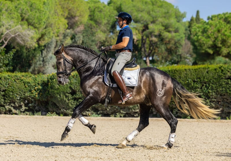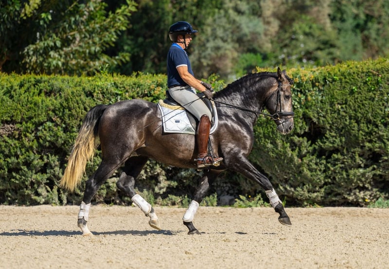 Unique opportunity for dressage enthusiasts! For sale is a magnificent PRE stallion, born in 2022, with a stunning gray coat that exudes elegance and presence. Standing at 16.1 hands, this gelding is ideal for those seeking a well-sized horse with excellent conformation. Specializing in classical dressage, he has been carefully bred and trained to develop his potential in this discipline. Don’t miss the chance to acquire a horse with great character, beauty, and versatility. For more information, please do not hesitate to contact us.