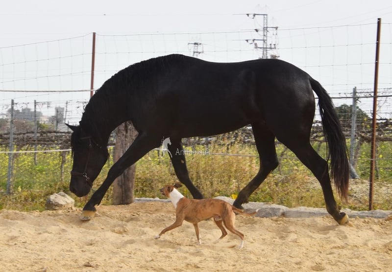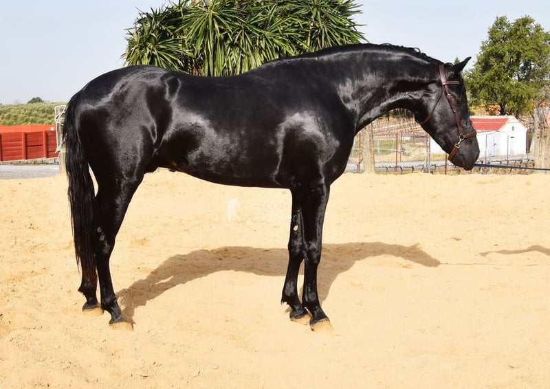 Carattere amabile, giocoso, rustico, grande, di stile barocco. Linea di sangue: Antonio Cuenca Delgado, Escalera, Bohorquez, bisnonno Manzanillo XII. È qualificato. www.elegante-andalusier.com
