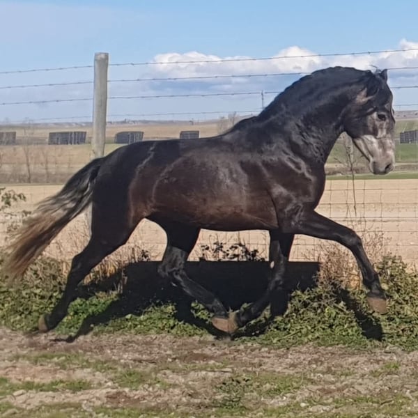 ¡Potro joven barroco en formato pequeño! ¡Sigue sorprendiendo con sus grandes y magníficos movimientos! Actualmente se está preparando para ser montado, está bien lungido, ya conoce la silla y se muestra muy tranquilo y curioso ante todo lo nuevo. El precio aumentará con la formación adicional. Es muy sociable, manejable y no tiene comportamiento de semental, se encuentra en un gran box de paddock al lado de otro semental. Seguramente se volverá más barroco con mucha crin. Hay fotos de los padres disponibles. Con gusto puede ser probado en el lugar y también puede quedarse con nosotros para su formación adicional. Si está seriamente interesado, esperamos su mensaje por correo electrónico o WhatsApp.