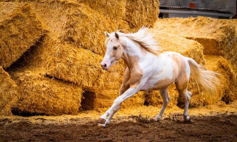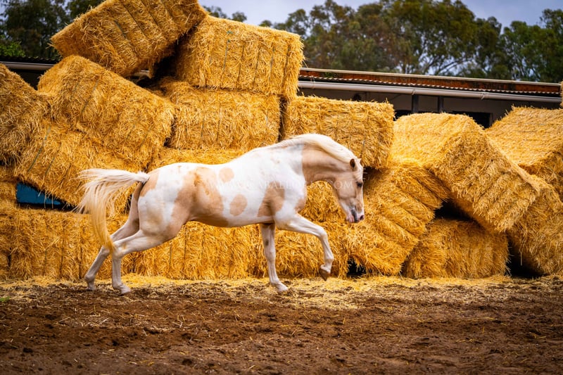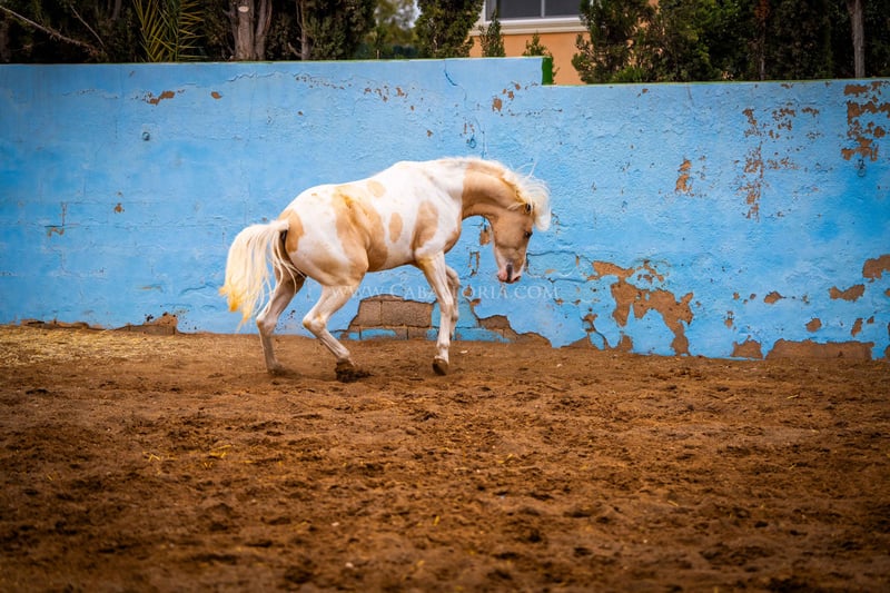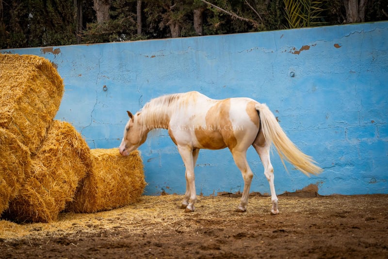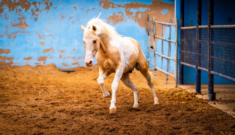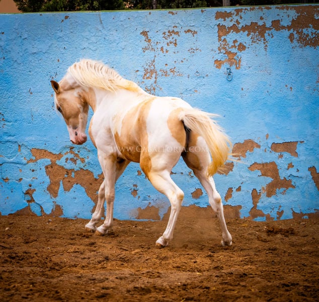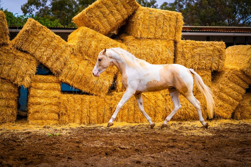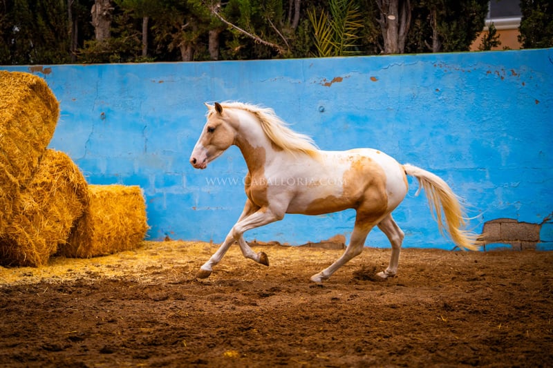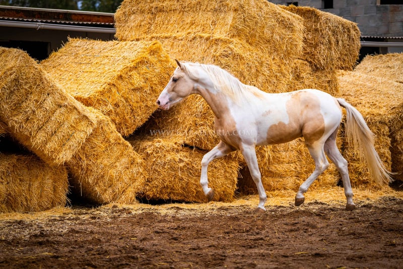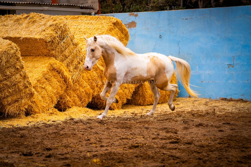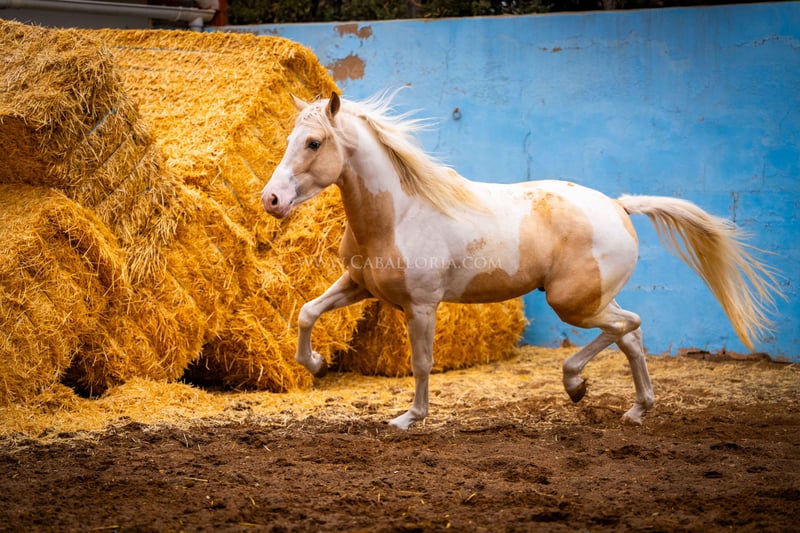 Młody koń: Bardzo inteligentny i uroczy palomino pinto jest gotowy na wielki świat! Miał już okazję posmakować jeździectwa, a jego charakter jest dobrą podstawą do takiego treningu. Jest bardzo ciekawy ludzi i lubi się prezentować tak samo jak PRE / Więcej informacji na życzenie!