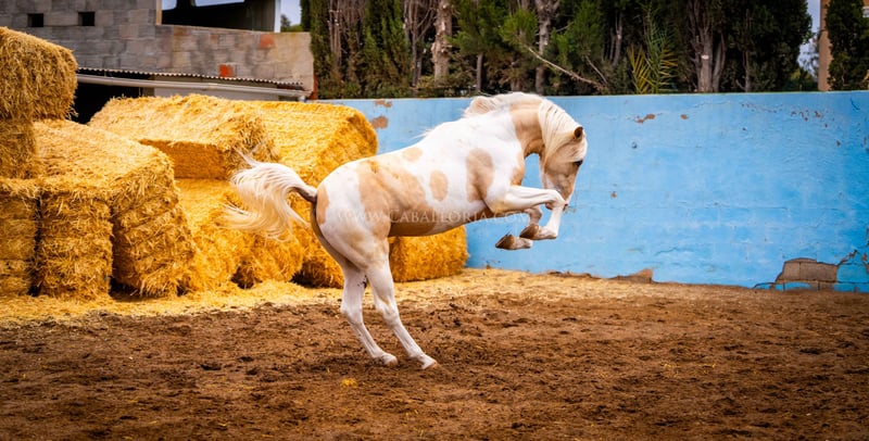 Jeune cheval : un pie palomino très chic et charmant est prêt pour le grand monde ! Il a déjà goûté à l'air du horsemanship et son caractère est une bonne base pour une telle formation. Il se montre très curieux envers l'homme et aime se présenter comme un PRE / Plus d'infos sur demande !