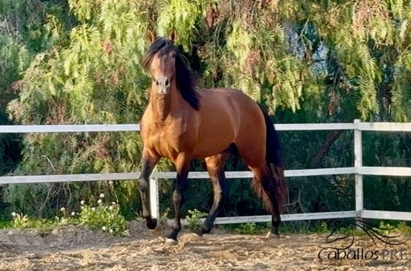 Tormento ist ein 1.59 m großer,mit hervorragenden Bewegungen ausgestatteter, PRE Hengst. Er ist geboren: 07/2021 Er hat einen ganz tollen, sehr liebevollen Charakter und mag es sehr wenn seine Menschen sich mit ihm beschäftigen. Er kennt Sattel und Trense und wird in kürze angeritten. Bei der Arbeit mit Sattel und Trense zeigt er sich sehr unbeeindruckt und macht alles ganz brav mit. Er ist immer kooperativ und vertraut seinen Menshen. Er zeigt im Stall keinerlei Hengstmanieren. Auf Wunsch könnte er aber selbstverständlich noch vor Ort gelegt werden. Er wäre sicher auch für die Working Equitation sehr interessant, aber natürlich auch für den ambitionierten Dressur oder Freizeitreiter. Wenn Sie weitere Informationen zu ihm wünschen setzen Sie sich bitte telefonisch mit uns in Verbindung. Weitere Videos senden wir sehr gerne nach einem persönlichen Gespräch. Bitte haben Sie Veständnis dafür das wir anonyme Anfragen nicht beantworten. Tranpsort kann Weltweit organisiert werden. Besichtigung, nach Terminabsprache, jederzeit möglich.