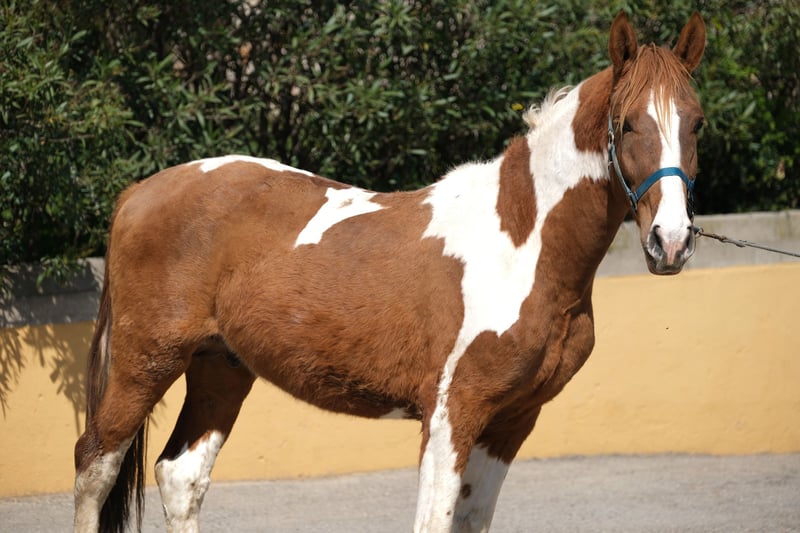 Our handsome young stallion is 4 years old, knows the basics of foal training, and currently lives in a paddock box next to other horses. He is a cross between a PRE and an Andalusian mare, with some Quarter Horse in his lineage, and has an equine passport. This gives him a very special appearance as a pinto with his baroque figure and a wonderful presence. His estimated final height as an adult stallion is around 1.60 m. He has a very lively, curious, and people-oriented character, so he enjoys being involved in everything and loves long cuddle sessions. He wants to be included in all activities and explores everything in detail. He is a playful character who makes spending time enjoyable. He is already familiar with dogs and is not intimidated by them. He is growing into a wonderful and brave stallion, with potential to excel in various disciplines such as dressage, working equitation, showing, or simply as a leisure partner. He already knows the basics of foal training and is accustomed to being lunged, but he has not yet been ridden, making him perfect for someone who wants to train their horse themselves and prefers not to start at an early age. Most horses in Spain are already backed at 3 years old, so this handsome fellow offers the unique opportunity of having a 4-year-old Spaniard who is still unbacked. He currently lives with his breeder, who raises her horses with a lot of love and patience, allowing them to develop into clear-minded and open-hearted horses. For him, we are looking for a person who wants to grow together as a team and continue his education so that he can develop into a great stallion or gelding. A castration on-site is also possible if needed. Location: Barcelona, Spain. A meeting in Spain and transportation can be easily arranged.