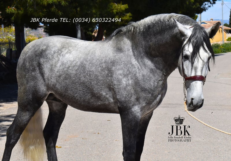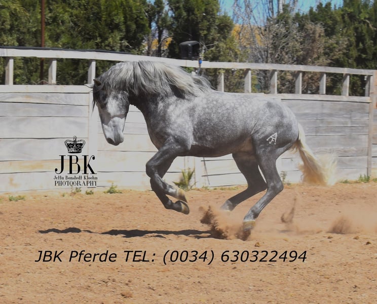 One of the few baroque PRE stallions of the old type: Primoroso is excellently trained and very well ridden. He has clean X-ray results and is free of piroplasmosis. Naturally, he also displays his full elegance in his movement. Watching him in the pasture is a real delight. Additionally, Primoroso has an incredibly sweet temperament and is without stallion doors.