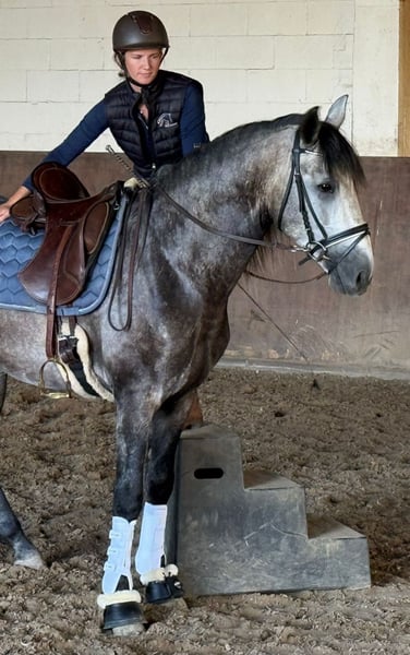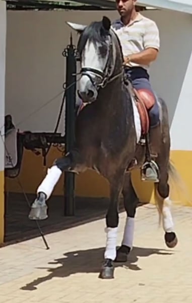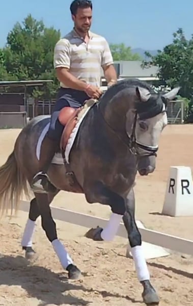Jong, talentvol en vol perspectief – PRE-ruin (4 jaar, appelkleurig grijs) Deze 4-jarige PRE-ruin in de gewilde kleur appelkleurig grijs combineert schoonheid, elegantie en talent. Met zijn opleiding op A-niveau in dressuur beschikt hij al over een goede basis en verrast hij tegelijk met zijn veelzijdigheid: of het nu gaat om Working Equitation, barokke presentatie of als betrouwbare vrijetijdspartner – hij maakt overal een goede indruk. Hij is buitenrijdbaar, goed verladen en smidproof, uiteraard vrij van eczeem en voorzien van een actuele gezondheidsverklaring (AKU). Zijn rustige aard, gecombineerd met jeugdige energie, maakt hem tot een ideale partner voor ambitieuze ruiters die samen met hem willen groeien. Een paard met toekomst, charme en potentieel – klaar om zijn verdere weg aan de zijde van zijn mens te vervolgen. Equidenpas en AKU aanwezig.