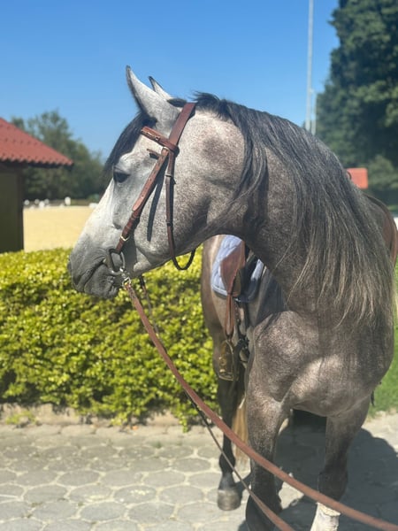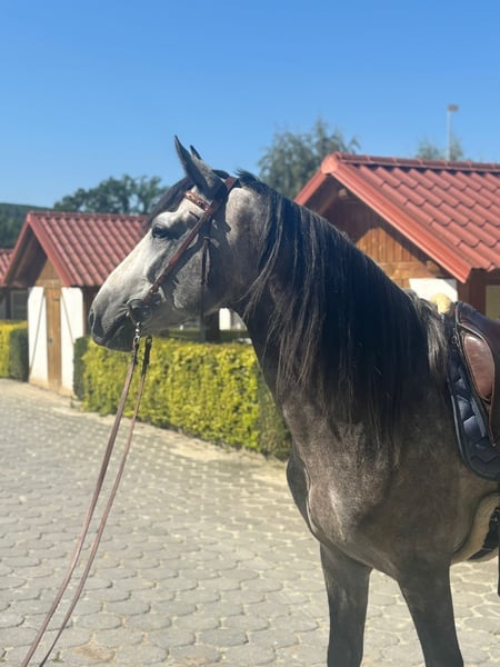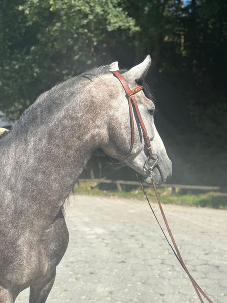 **Sales Advertisement: PRE Stallion for Sale** For sale is a beautiful PRE stallion, born in 2021. With a height of 160 cm and his elegant dapple gray coat, he is a real eye-catcher. This talented stallion is excellently suited for dressage and already shows promising approaches in his training. His friendly nature and willingness to learn make him an ideal partner for ambitious riders. He is well-mannered, easy to handle, and has already gained some experience under saddle. If you are interested or need further information, please feel free to contact me. Visit us and see for yourself this amazing horse!