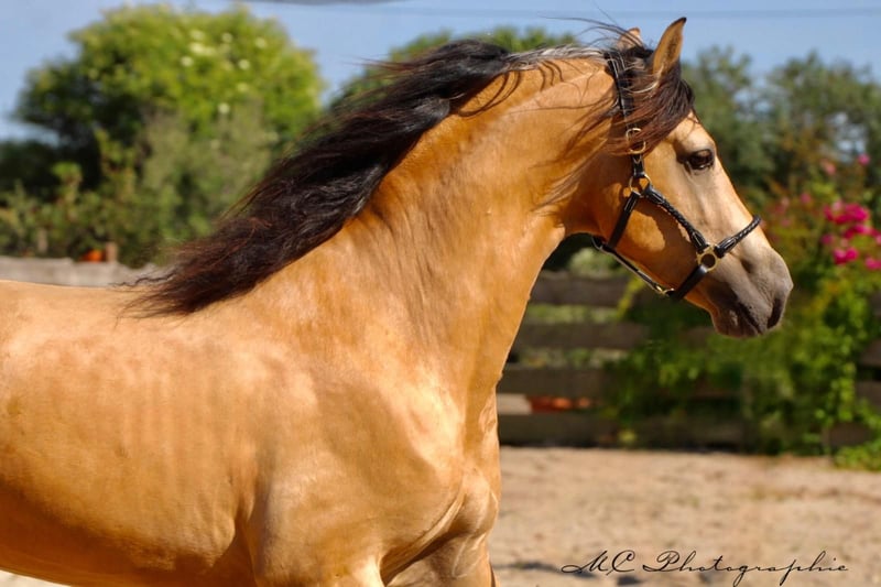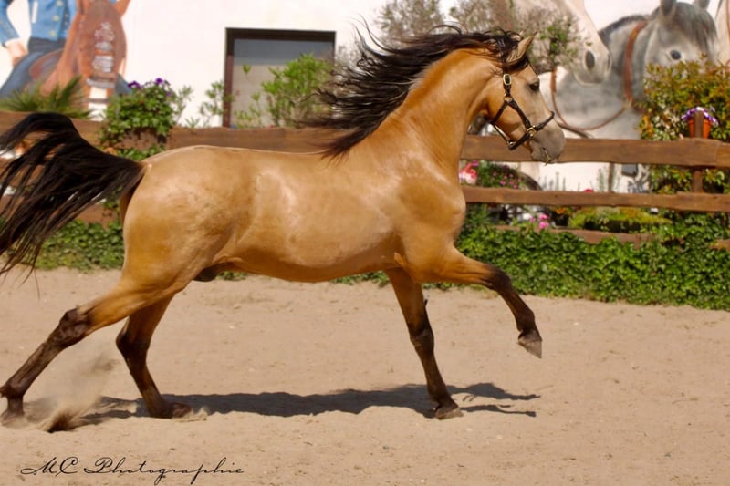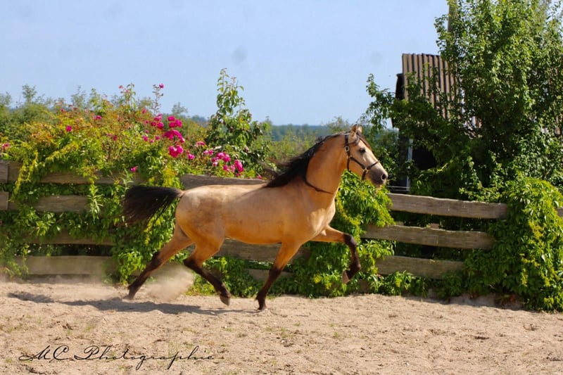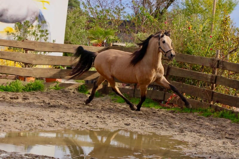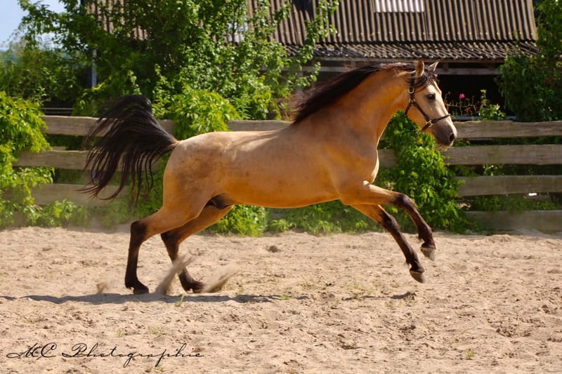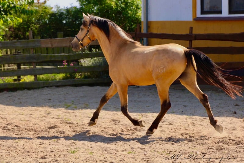 **Sales Advertisement: PRE Stallion** For sale is a beautiful PRE stallion, born in 2021. With his striking palomino coat and a height of 160 cm, he is a real eye-catcher. This talented stallion shows great potential in dressage and is ready to take off with an experienced rider. His movements are elegant and fluid, making him a promising partner for future challenges. He is well-mannered, easy to handle, and has a friendly character, which makes him an ideal companion for both sport and leisure. He is lunged according to his age. Barefoot. Familiar with box and paddock. For serious inquiries or further questions, I am happy to assist. Come visit us and see for yourself this wonderful stallion!