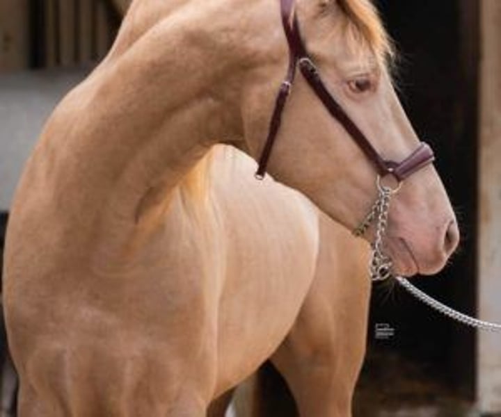 Future stallion and extraordinary life companion This young 4-year-old stallion grew up in freedom, in an environment that allowed him to develop peacefully. While many foals begin ridden at 3 years old, his owner preferred to give him an extra year to properly train. He is now at the ideal time to begin work. Now that he's ready to take his first steps under saddle, seeing him in front of you confirms that the wait was worth it. It's not just his coat Isabella— rare and highly sought after at PRE — which attracts attention, but also its attitude: a calm young horse, with a frank gaze, who readily accepts proximity and contact. From the very first moment, he exudes a serenity that makes you want to work with him. He lets himself be caught without difficulty, remains calm when tied up, gives his feet with confidence and lets himself be touched everywhere. For a stallion who has not yet started breaking in, he shows remarkable assuranceHe doesn't get agitated, doesn't get ahead of things: he waits, listens and responds. And at that age, that's already very telling. When he moves, he's a pleasure to watch. He has a broad, supple trot, a steady walk, and a well-balanced canter. With these qualities, he'll be able to progress in both dressage and working disciplines. He feels natural, with good aptitude for whatever you ask of him. And if you're interested in reproduction, here's an added bonus: he is a carrier of the gene Cr, which guarantees that he will systematically transmit diluted coats to his foals (palominos, golden bays, creams, isabelles, etc.). This is a great opportunity for anyone looking to acquire a different horse, with real added value. Its genetics will allow you to breed foals that are highly sought after on the market, while enjoying a daily companion with a strong character and a beautiful presence. An investment that is lived to the fullest... and which can also generate a good return thanks to the coverings, because its profile is highly sought after by breeders of PRE with diluted coats. At IberHorse, we select horses according to the same criteria we would use for ourselves: character, quality and ease of work. If this young Isabelo matches what you are looking for, we will be happy to tell you more and arrange a visit.
