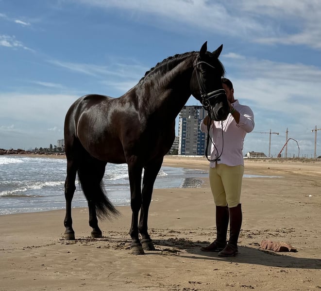 **Sales Advertisement: PRE Stallion** For sale is an impressive PRE stallion, born in 2020. With a height of 162 cm and his noble black coat, he attracts all attention. The stallion is well-mannered, has a friendly disposition, and is manageable both in the stable and during training. He is an excellent choice for ambitious riders who enjoy dressage work and are looking for a reliable partner. If you are interested or require further information, please feel free to contact me. Viewings are possible by appointment. Don't miss this opportunity to meet an extraordinary stallion! Location: Spain