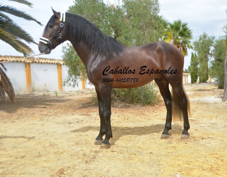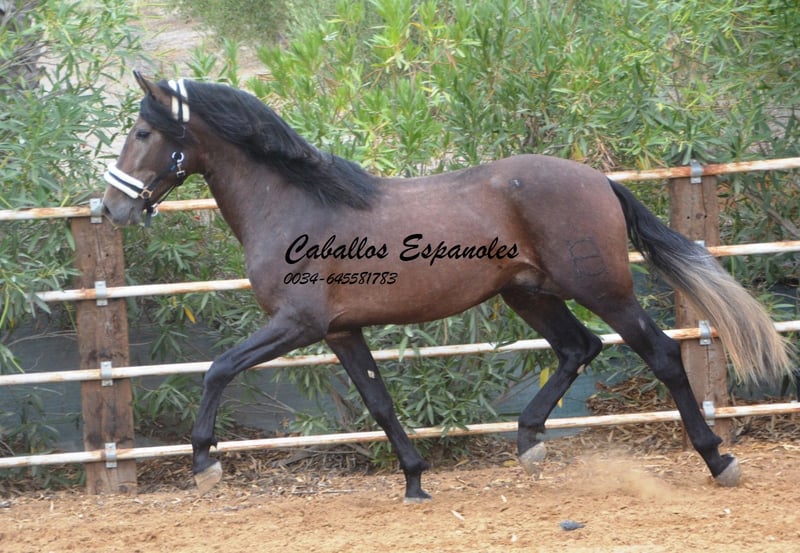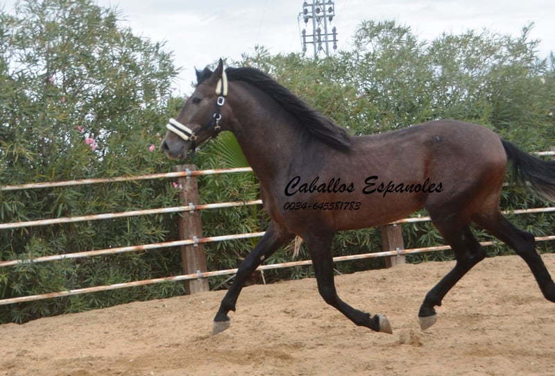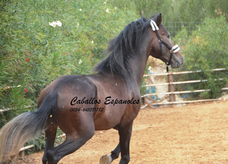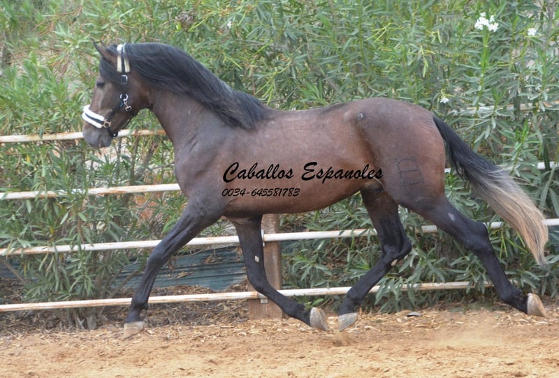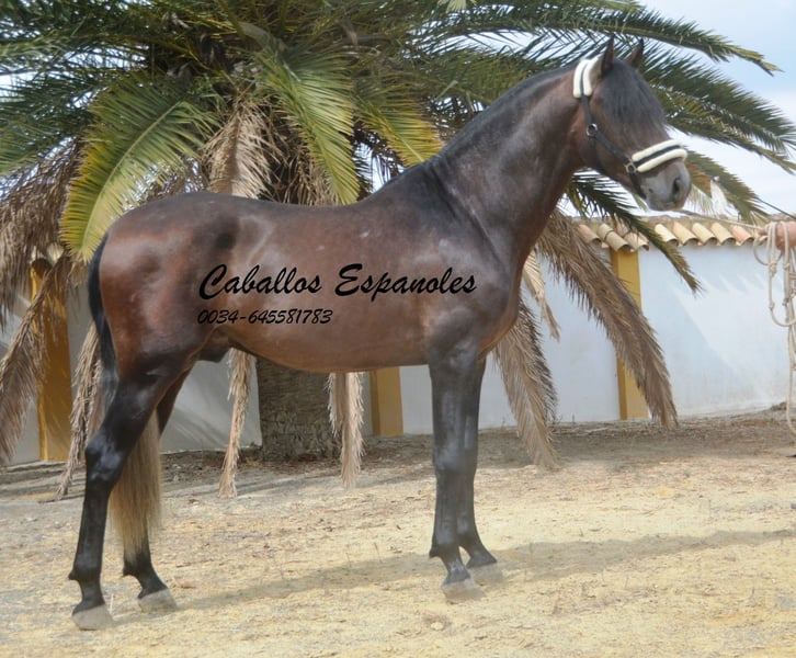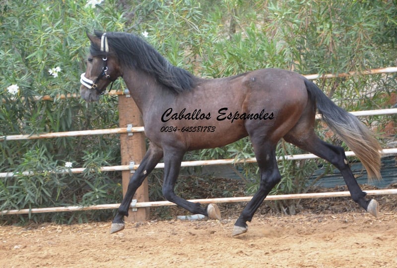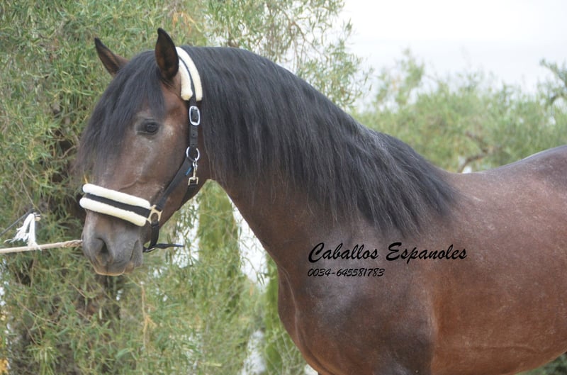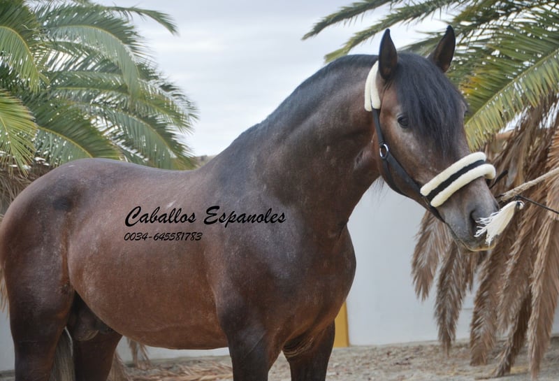 For sale is an impressive PRE stallion, born in 2021. This young dressage prospect stands out with his striking appearance as a dark bay (brunfalbschimmel) and a height of 16.3 hh. His potential in dressage is already clearly evident, and he consistently demonstrates a willing and motivated attitude. With his elegant movement and balanced temperament, he is a true asset for ambitious competitive riders as well as for enthusiasts of this noble breed. This stallion possesses all the qualities to excel in the dressage arena. He has been ridden in basic gaits and always shows a good work ethic and eagerness to learn. Lineage: His grandsire is the licensed stallion Dictador, whose parents are also licensed. If you are interested in this promising horse, we look forward to hearing from you. The horse is being sold on behalf of the owner. He can stay with us for training. A veterinary certificate (AKU) can be arranged at short notice. International transport available.