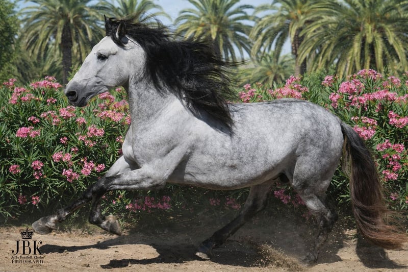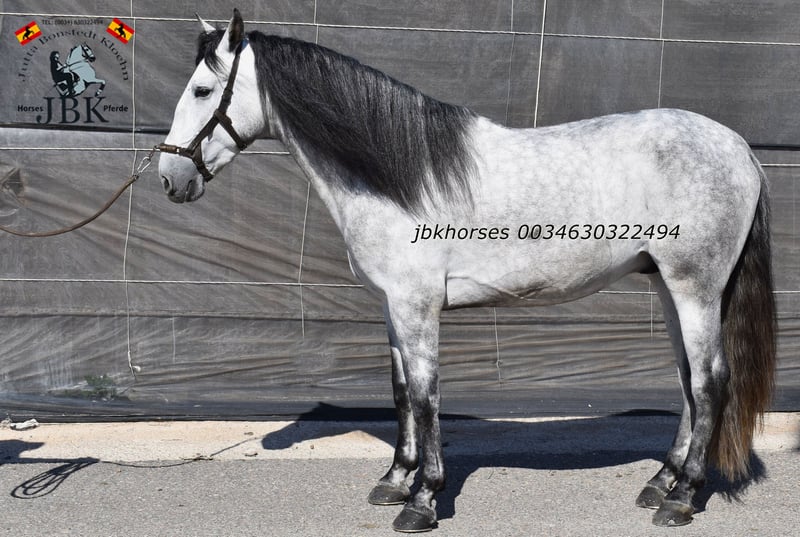 PRE semental Abogado Arcos was born on May 16, 2021. He was raised in a herd and was backed at the age of three. He is now reliably and confidently ridden in all gaits. He is also familiar with short local outings. A horse that works solidly and seriously. You cannot expect any nonsense from him, as his name stands for sovereignty. Abogado is a grandson of the elite breeding stallion EDUCADO X, from the Guardiola bloodline, with further lineage including Miura, Novales, Bariain, Muñoz, and Terry, completing the pedigree perfectly.