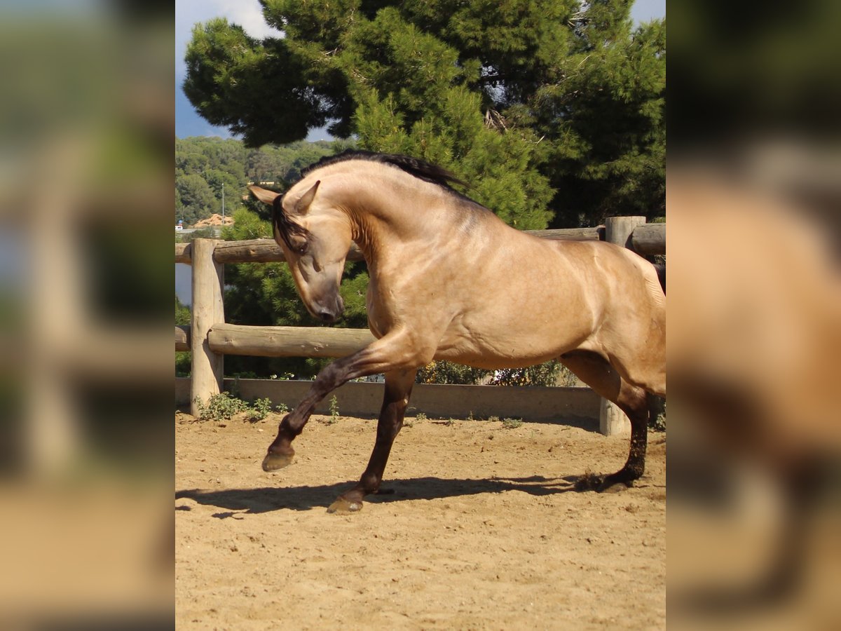 Nuestro semental PRE apto reproductor en el color especial Bayo (dun) tiene un gran carácter, está dispuesto a trabajar pero siempre manejable y tiene mucho potencial. Actualmente se está domando y ya camina, trota y galopea bajo el jinete. ¡Videos y más información a petición!