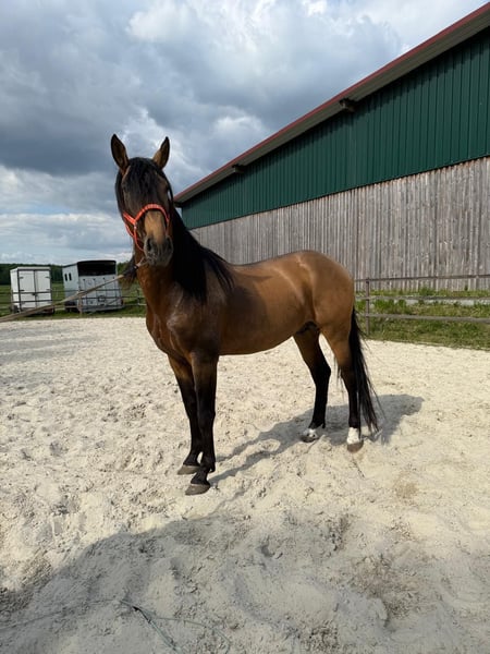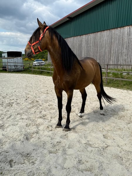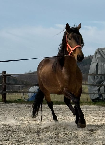 Eleganter Barockhengst, geb. 2021, mit beeindruckender Präsenz und viel Potenzial. Der Falbe besticht durch sein harmonisches Exterieur und sein edles Erscheinungsbild. Mit einem Stockmaß von 170 cm vereint er typische barocke Linienführung mit einer ansprechenden Größe, die sowohl in der Zucht als auch im Sport überzeugen kann.hat sehr gut bei der körung bereits 3 jährig abgeschnitten. Er verfügt über 3 hervorragende grundgangarten, besonders der Galopp ist ein Traum . Er wurde bereits an den Sattel gewöhnt.Seine robuste Konstitution, sein ausgeglichener Charakter und seine elegante Erscheinung machen ihn zu einem idealen Partner für ambitionierte Züchter oder Reiter, die Wert auf Qualität und Charakter legen. Ein Pferd mit viel Potenzial für die Zucht ebenso wie für den gehobenen Reitsport. Für weitere Informationen und einen persönlichen Eindruck stehe ich gerne zur Verfügung.