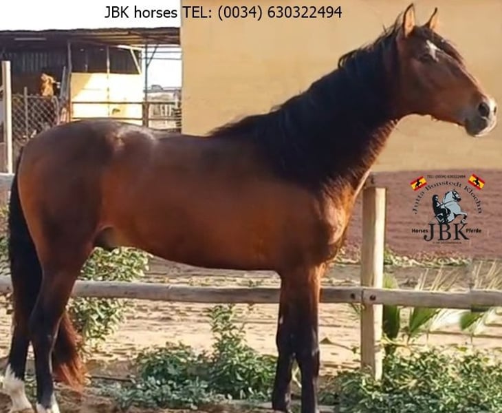 Le hongre PRE Primoroso est né le 24 juillet 2021. C'est déjà un spécimen assez grand. Primoroso a grandi en troupeau avec des compagnons de même âge et a été mis en box à l'âge de 3 ans pour apprendre correctement les bases de l'éducation des poulains. Il est facile à manipuler et ne pose aucun problème. Il connaît également bien le travail en longe et se montre coopératif dans son travail. Primoroso aime être avec ses humains et essaie toujours de bien faire. C'est un diamant brut avec lequel il est agréable de progresser.