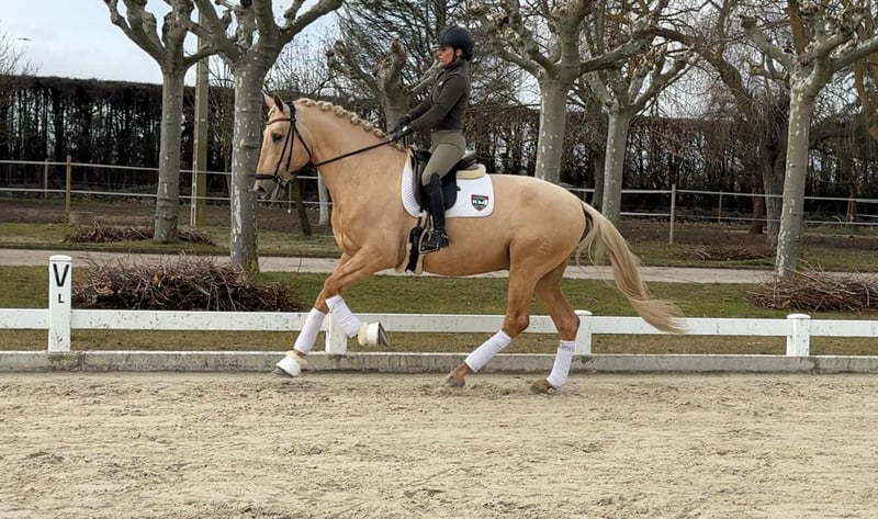 Palomino hengst, zoon van Tiziano III, met een stokmaat van 1,73 m. Begonnen met dressuurtraining, niveau: passend bij zijn leeftijd. Uitstekend karakter en zeer mooi om te zien.