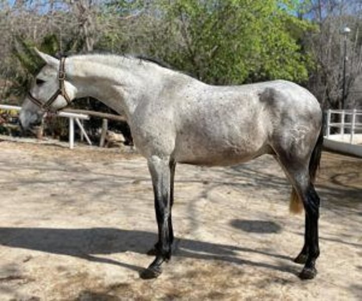 The Club Favorite: Perfect for Young Horse Riders Let me tell you about this young horse, only 4 years old. Despite his young age, he has a tranquility and nobility which make him the ideal candidate for the youngest members of the club. This horse has an ideal temperament to fit into an environment where children and adolescents begin to take the reins and develop as horse riders. Although his training is basic, it has been carried out with great care and precision, establishing a solid foundation on which children can continue to learn and progress. Additionally, he is not only the right size for young horse riders, but he also still has some room to grow, hoping to reach around 1,58m in height. He also had the opportunity to go out for walks with other horses and demonstrated to be exceptionally calm and manageable, both in company and in new situations. This not only highlights his good character, but also promises enviable adaptability to the various activities and environments offered by a riding club. This youngster is an excellent option for any club looking for a horse who is not only a loyal friend to his young horse riders, but also a patient instructor in the art of riding. His ability to connect with kids and his ability to adapt and learn profile him as a future favorite in your club. Are you interested in meeting him and seeing how he can fit into your team? This horse is ready to capture the hearts of horse riders and help them grow in confidence and skill. Don't miss the opportunity to have such a precious and charming member in your equestrian family!