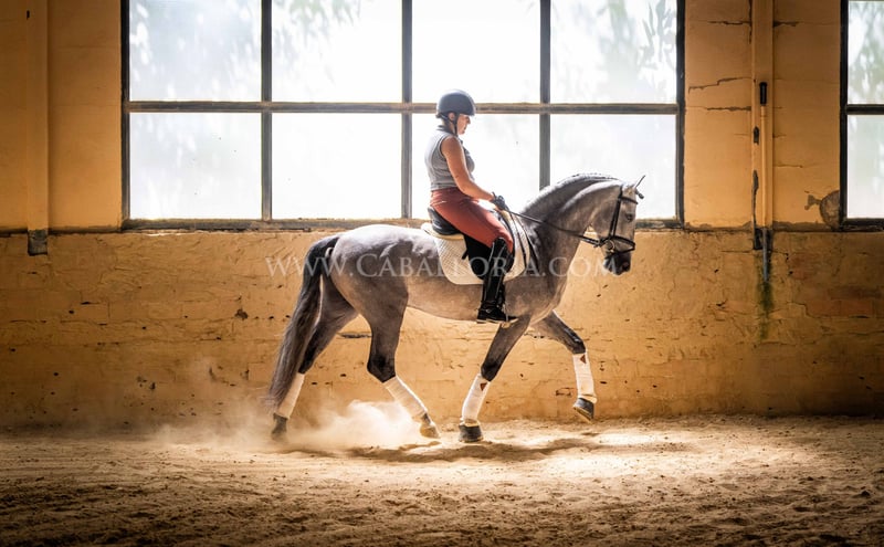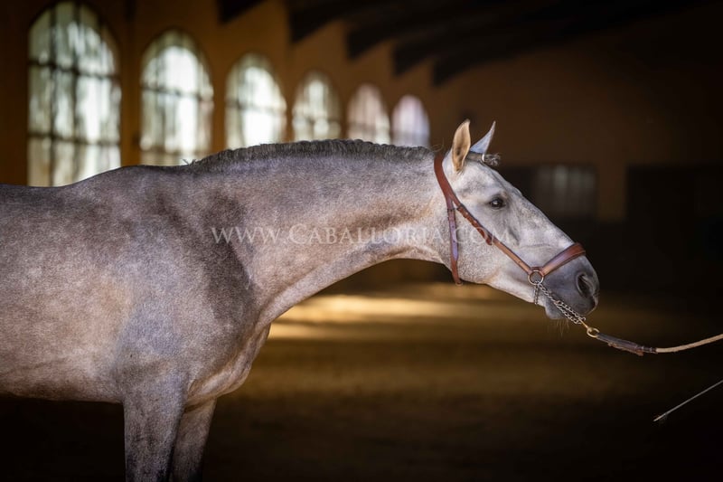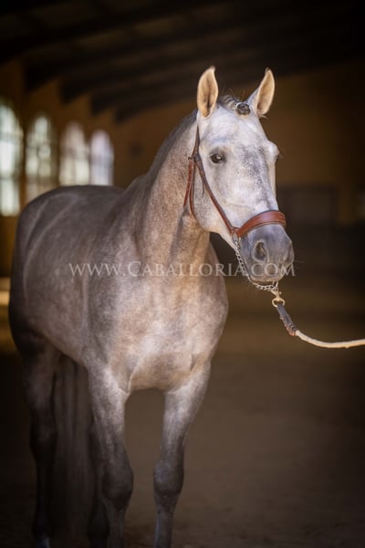 Name: Niger Date of birth: 06.02.2019 Height: 1.59 m Training level: Level 3/4 (Level M/L in Germany) ANCCE classification: Reproductor básico (licensed) Niger is a very cooperative and uncomplicated PRE stallion with a typical, noble Cartujano head and excellent movement. Niger is currently at M/L level and is always very hard-working. He likes to present himself and is also very playful. His charming nature and his reliability in dressage as well as in daily handling are particularly noteworthy. He has 2 small warts, one on the saddle and one on his belly, which are currently being treated internally so that they fall off on their own and do not return. These have not affected his riding so far. There are no melanomas. Information on request! *All visual content, including photos and videos, presented by Caballoria S.L. are protected by copyright. Any use of these materials without the express written permission of Caballoria S.L. is strictly prohibited.