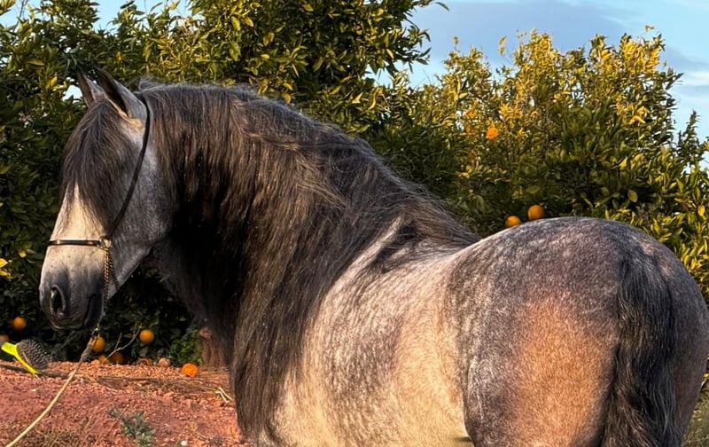 ❄️CHRISTMAS DREAM❄️ Are you ready for this breathtaking Fairytale Horse? This 5 years old, 1,60m high PRE Stallion is a real Stunner! With his baroque neck- & exterieur, his amazing manes, his smal head & incredible character he s definitely the perfect choice for the lovers of the original spanish breed! He is good basic ridden and a real gentleman under the saddle as well as in handling! For sure he s coming from best hands and a hugh vetting with all x-rays! Cat. 15 - 20k Location: València, Spain - Transport can be arranged worldwide! For more Informations contact us via What s App ➡️ +34 622 509 702 We speak 🇬🇧🇩🇪🇪🇸