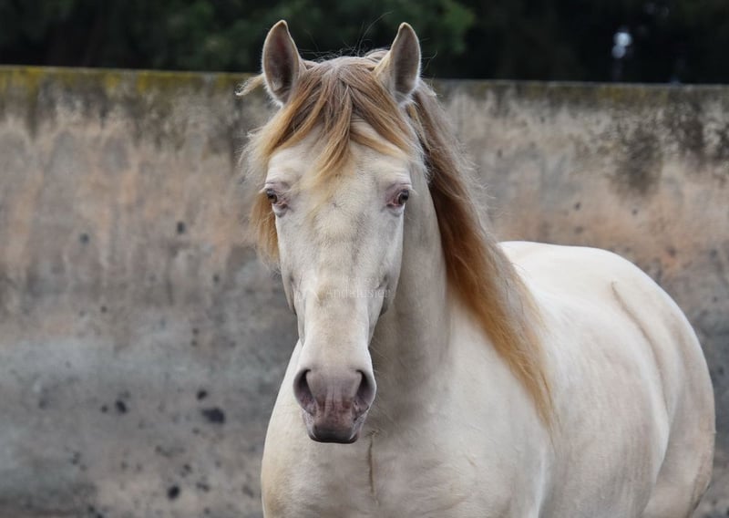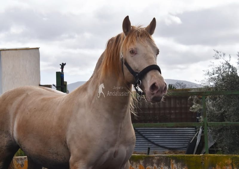 lief karakter, in de basisgangen gereden, Spaanse stap, barok, zeer comfortabel, bankpaard, speciale kleur, PRE Bayo Perla (CrPrl) met papieren, goede bewegingen en afstamming, afstamming: Salvador Miras Gomez, Paco Marti, Yeguada la Llana, Ururopa Gaucho III is gekwalificeerd www.elegante-andalusier.com