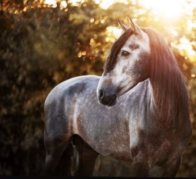 Ich verkaufe meinen 6jährigen PRE Hengst. Er ist 2020 geboren, 1, 63 cm groß und besitzt volle ANCCE Papiere. Er ist mit sehr guten Grundgangarten ausgestattet, mit wenig Campaneo und beherrscht mittlerweile die Lektionen der Klasse L. Er ist bei der FN als Sportpferd eingetragen, wurde allerdings noch nicht vorgestellt. Junio wird ausschließlich am Kappzaum longiert, Ausbinde- und Hilfszügel gibt es bei meiner Ausbildung nicht und sind ihm somit fremd. Er ist regelmäßig geimpft, entwurmt sowie dem Zahnarzt und dem Hufschmied vorgestellt. Er ist vorne beschlagen. Tagsüber hält sich Junio auf der Koppel/Paddock auf, nachts schläft er in der Box und steht dabei mit Stuten zusammen im Stall, was ihn überhaupt nicht stört. Im Auswärtstraining zeigt Junio sich artig, konzentriert und sehr sozial mit anderen Pferden. Er lässt sich vorbildlich verladen. Junio sucht jetzt seinen Menschen, der ihn auf seinem weiteren Lebensweg begleitet und ihn dabei fördert. Kennenlernen und Probereiten jederzeit nach Absprache möglich.